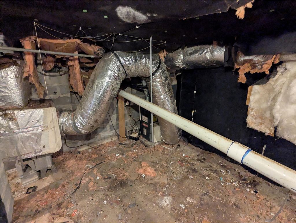 The large 0.3372 acre property presents an investment opportunity in close-in North Austin. Remodel or tear down and build larger home. Roomy 2 Bedroom home with hardwood flooring, ample built-in shelving, double carport. The large backyard is under a canopy of tall trees. On a lush lower-traffic interior lot. A rare large basement underneath! CAUTION: Black organic growth observed in the home and basement. The wastewater plumbing in the basement has become detached from the plumbing in the home and will require repair/replacement. The deck shows significant wood rot and is unsafe to walk on.