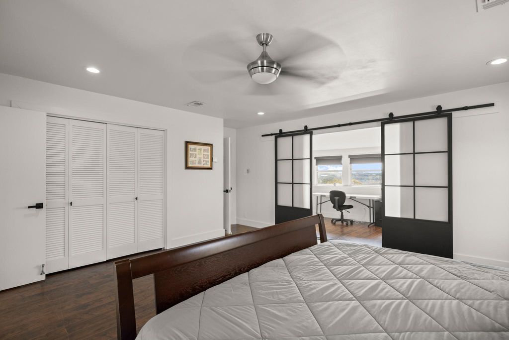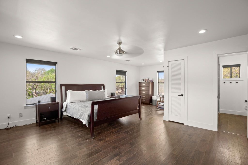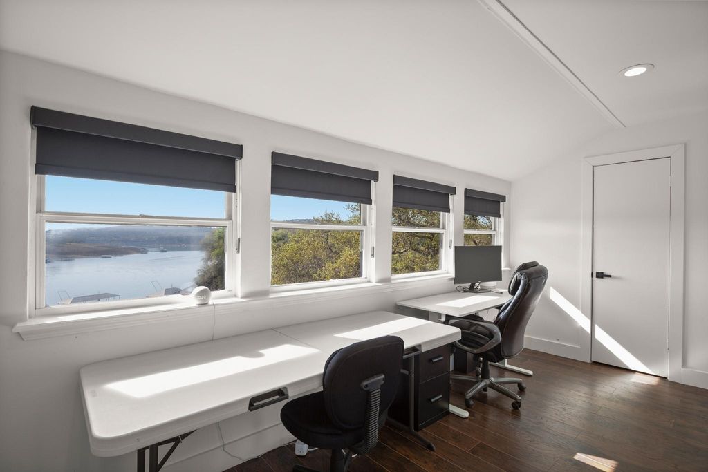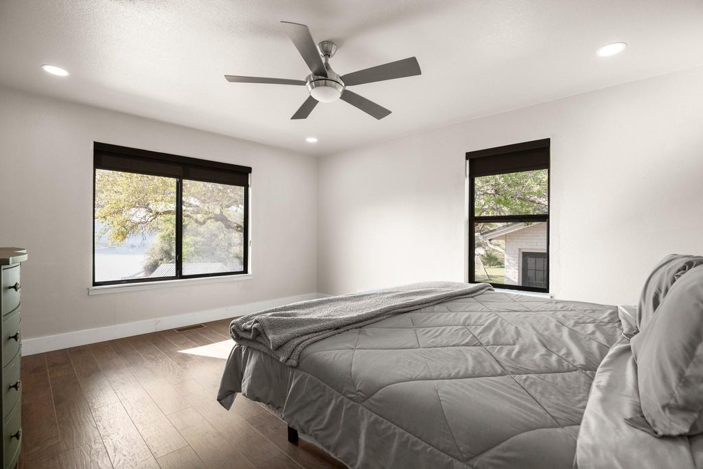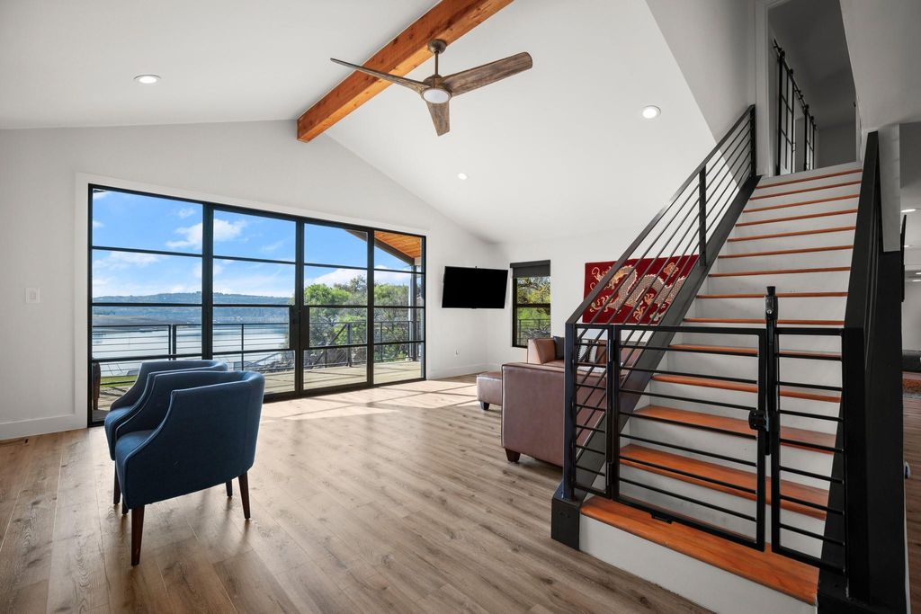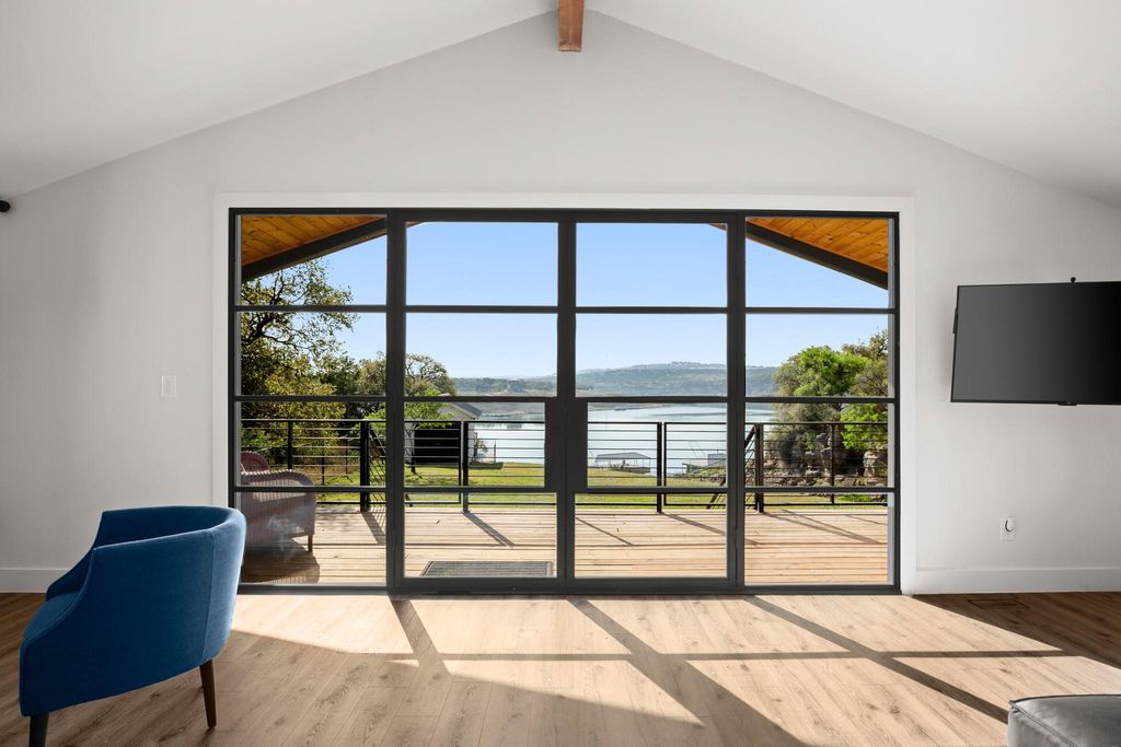 Absolutely stunning, recently remodeled waterfront property nestled on 2.1501 acres along the main channel of Lake Travis' south shore! This exceptional property is complete with a private boat dock and lift. A newly installed tram provides effortless access to the dock without the need for stairs, though you can also use the newly built steps if preferred. Enjoy breathtaking panoramic lake views from every room on the main level, including the office, through beautiful steel-framed windows! This property is made up of two lots: 1401 and 1405 Cat Hollow Club Dr. The vacant lot at 1401 Cat Hollow Club Dr (1.001 acres) and the home at 1405 Cat Hollow Club Dr (1.150 acres) are being sold together. The vacant lot offers potential for future sale or development. The farmhouse-style home has been meticulously remodeled with high-end upgrades, including new HVAC systems (2 units), wood flooring, steel-framed windows, quartz countertops, and stainless steel KitchenAid appliances. The owner's suite features a spacious walk-in shower, and the expansive back deck, complete with fencing, a gazebo, and a deck area, is perfect for enjoying the stunning lake views. Every detail of the remodel has been crafted with quality and design in mind. The detached two-car garage offers ample workshop space, which has been fully upgraded and finished to serve as additional living space while still maintaining its functionality as a garage. Conveniently located near the Hill Country Galleria, shopping, dining, local wineries, Pace Bend Park, and Briarcliff Marina, with access to Lake Travis ISD schools.