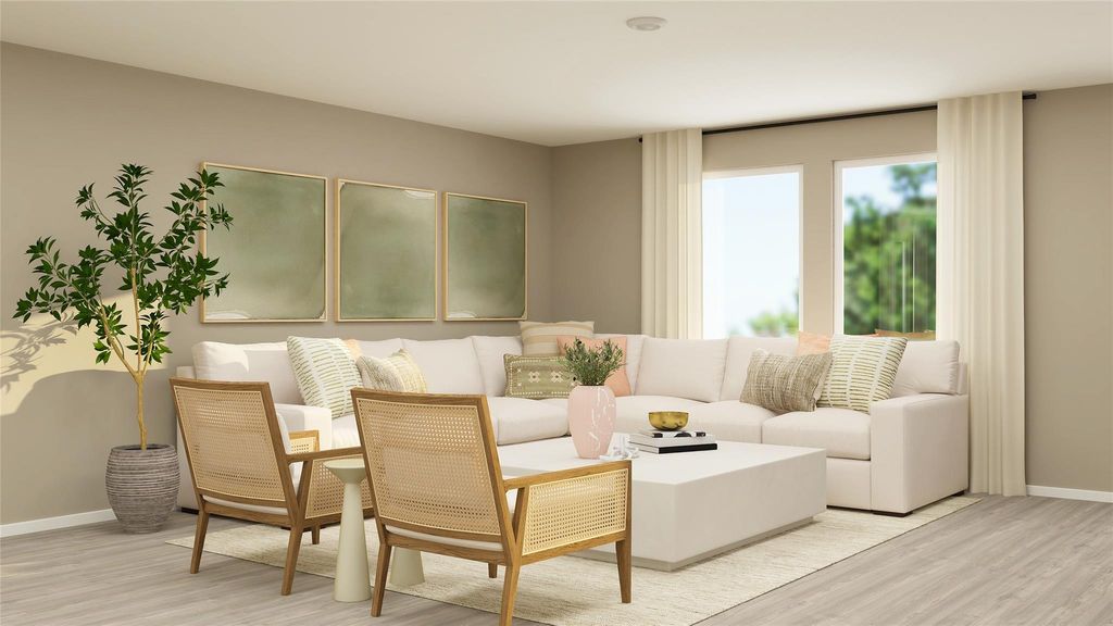 The Sherman - This new two-story home features a luxurious owner's suite on the first level, offering a tranquil retreat with a full bathroom and walk-in closet. A nearby open-concept layout encourages seamless transitions and multitasking between the kitchen, living and dining areas. On the second floor, a versatile game room provides a convenient shared living area near three additional bedrooms. Photos are for illustrative purposes only. Estimated Completion March 2026. The completion date, prices and features may vary and are subject to change. Please verify with Lennar directly.