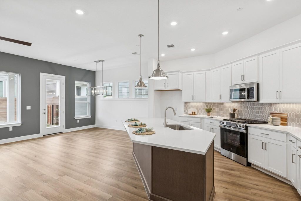 Beautiful curb appeal, optimal design and top-quality construction make this new David Weekley home in The Twilight at Goodnight Ranch a wonderful place to call home! The covered front porch and modern craftsman exterior create a bold and stylish first impression. The Robertson floorplan by David Weekley Homes features expansive sight lines throughout the home and natural light where it matters most. The open kitchen and center island sink make for the perfect spot to entertain in style and enjoy the everyday comforts of the open concept family and dining areas. A pair of private bedrooms, a full bathroom and an open Owner's Retreat share the second floor of this spacious home. Let the grind of daily life fade away in your luxurious soaking tub or curled up with a good book in the Retreat. Contact David Weekley's Goodnight Ranch team to learn about the industry-leading warranty and EnergySaverâ„¢ features included with this amazing low-maintenance new construction home in Austin, Texas! Our EnergySaverâ„¢ Homes offer peace of mind knowing your new home in Austin is minimizing your environmental footprint while saving energy. A David Weekley EnergySaver home in Austin averages a 60 on the HERS Index. Square Footage is an estimate only; actual construction may vary.