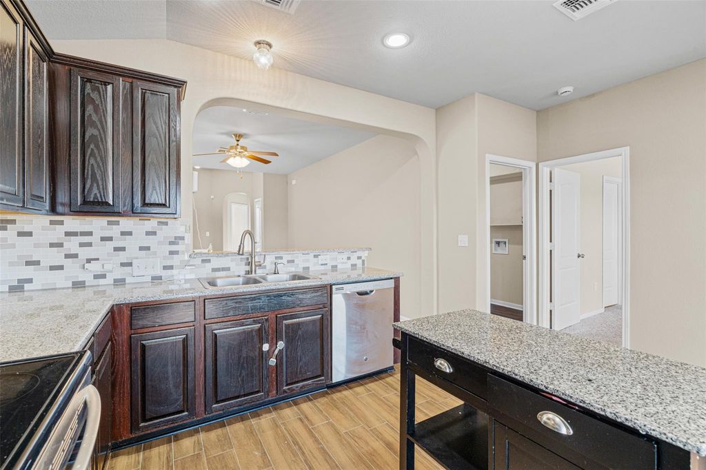 Welcome to Stonewater! Known for its convenient location to amenities, parks, and short drive to Austin, this home is located on a quiet cul-de-sac providing reduced traffic and more tranquility. It provides 1458 sqft of living space, with 3 bedrooms, 2 full bathrooms, and an open floor plan that is enhanced by vaulted ceilings and recessed lighting. It offers a covered patio that backs up to a greenbelt providing extra privacy and a peaceful lookout. This home shows pride of ownership, and was extremely cared for. A move-in ready home within a fast growing city like Manor, TX is rare. Whether you're just starting out or looking to downsize, this could be the perfect fit.