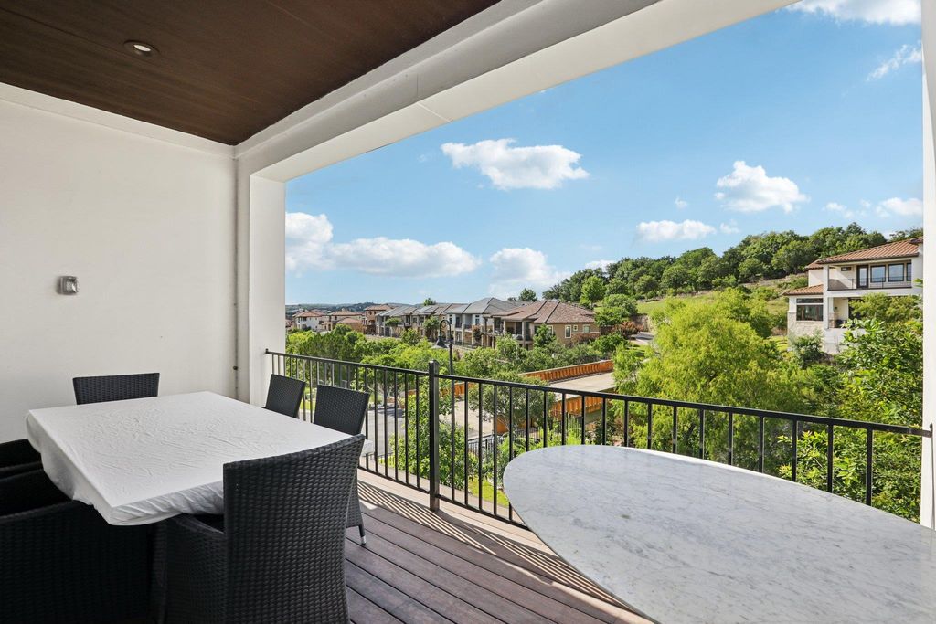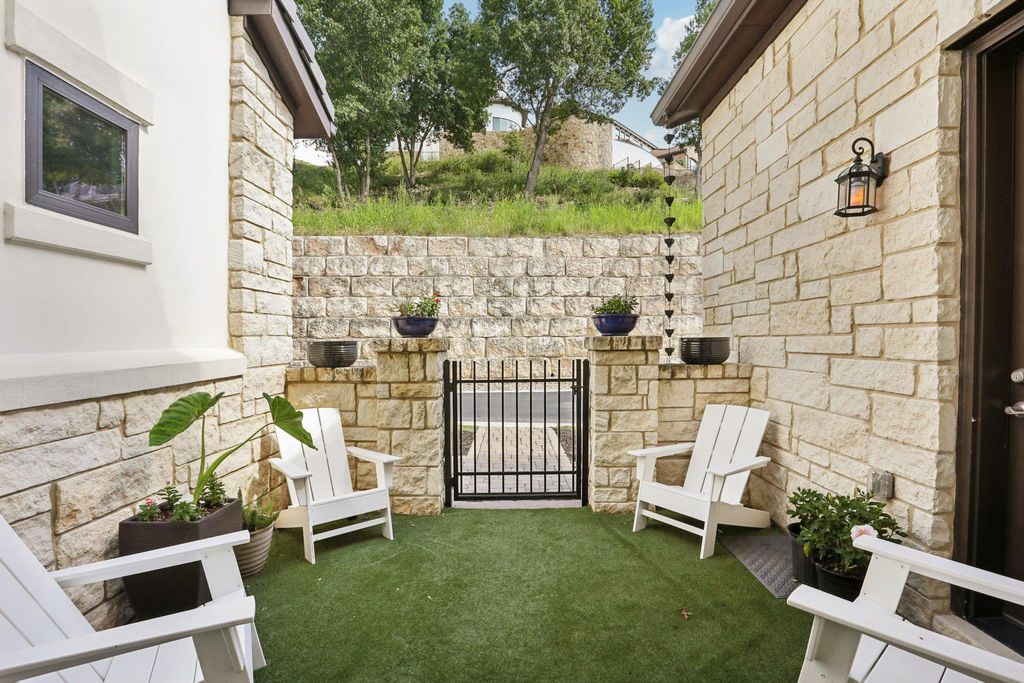 CARE-FREE LAKE LIFE AT ITS FINEST! Experience exceptional Hill Country living in this beautifully designed ~3,000 SF luxury condominium that lives like a detached home, ideally situated on a premium corner lot just a one-minute walk to the Rough Hollow Yacht Club, marina, and fitness center. Located in the gated Lake Ridge section of Rough Hollow, this rare offering blends refined design with effortless lock-and-leave convenience. A private front courtyard creates an inviting outdoor retreat, while soaring vaulted and high ceilings enhance the open, airy interior. The main level features a gourmet chef's kitchen with floor-to-ceiling solid wood cabinetry, premium Thermador appliances, and an oversized island"”perfect for entertaining. The adjacent primary suite offers a tranquil escape with a spa-like bath, soaking tub, walk-in shower, and custom walk-in closet. Hardwood and tile flooring throughout provide both elegance and durability. A detached casita with private entrance offers flexible space for guests, a home office, or studio. Upstairs includes two additional bedrooms, a full bath with dual vanities, and a spacious media room that opens to a covered balcony with Hill Country views. Motorized electric blinds throughout provide effortless light control and modern smart-home convenience. Indoor-outdoor living is elevated with a covered patio off the living area, complete with a built-in grill, plus an upstairs covered porch. The private backyard"”one of the only in the community"”is pool-approved and ideal for pets, play, or entertaining. Enjoy the unmatched Rough Hollow lifestyle with access to resort-style amenities including a yacht club and marina, multiple pools with lazy river, paddleboards and kayaks, sports courts, scenic trails, on-site dining, and a year-round activities director.