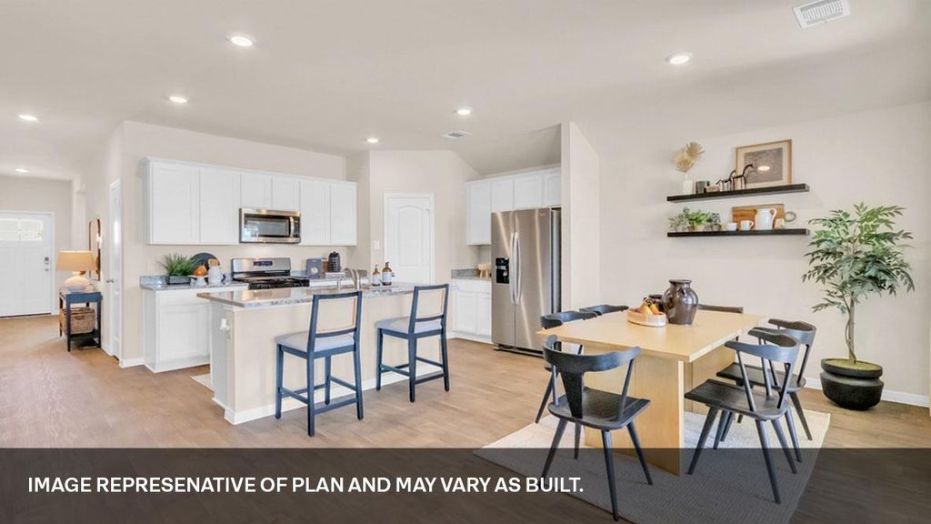 UNDER CONSTRUCTION - EST COMPLETION IN AUGUST Photos are representative of plan and may vary as built. Step into the Irvine is a single-story home that offers 1,796 square feet of living space in our Monarch Ranch community in Manor, TX. The Irvine is the perfect place to call home with a two-car garage, four bedrooms and two bathrooms. When you enter the home, a long foyer will take you past the three spare bedrooms, the guest bathroom and utility room. As you enter into the heart of the home you are greeted with the open kitchen, breakfast nook and family room. The kitchen features a large kitchen island, perfect for entertaining, a walk-in pantry and stainless-steel appliances. The breakfast nook opens to the covered patio and backyard. The main bedroom, bedroom 1, is just off the family room at the back of the home offering privacy. Bedroom 1 features a large ensuite with a large walk in closet. This home comes included with a professionally designed landscape package and a full irrigation system as well as our Home is Connected base package that offers devices such as a Video Doorbell, Deako Smart Light Switch, a Honeywell Thermostat, and more.