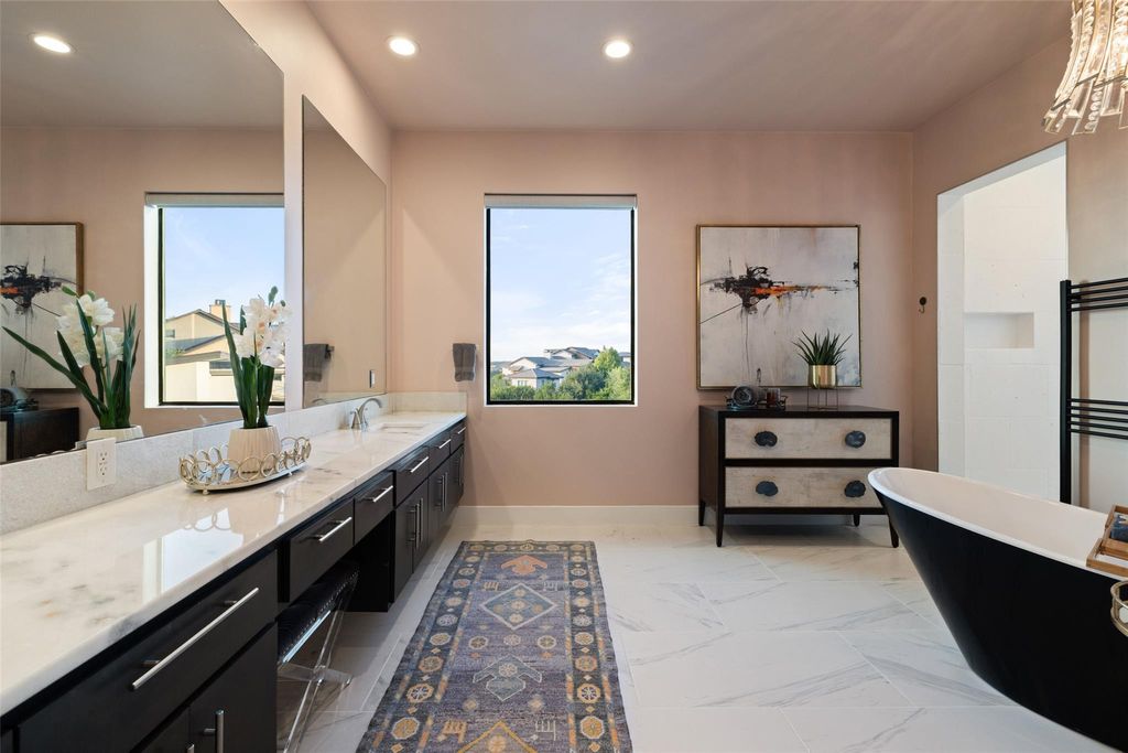 An extraordinary estate in the gated golf community of Spanish Oaks. Privately set on a cul-de-sac, this ~8,400-SF home blends everyday ease with Hill Country polish. The main level's open plan connects the living room, formal dining, bar/lounge, and an eat-in kitchen with a large butler's pantry. Three en-suite bedrooms share the floor with a private office (flex fifth bedroom) and a separate apartment with its own entrance and garage. Upstairs, the primary retreat offers dual walk-in closets, a spa-style bath, and a balcony with tranquil views, plus a second office for remote work or creative space. The lower level is built for entertaining"”game room, full bar, and dedicated theater"”plus an additional bedroom and full bath currently used as a fitness room. Outside, multiple covered patios frame an in-ground pool and outdoor bar; low-maintenance turf keeps the yard green year-round. Minutes to the Amenity Center (pool, trails, Fish Camp). Optional Spanish Oaks Golf Club membership. Easy access to downtown Austin and the Hill Country Galleria. Information should be verified.