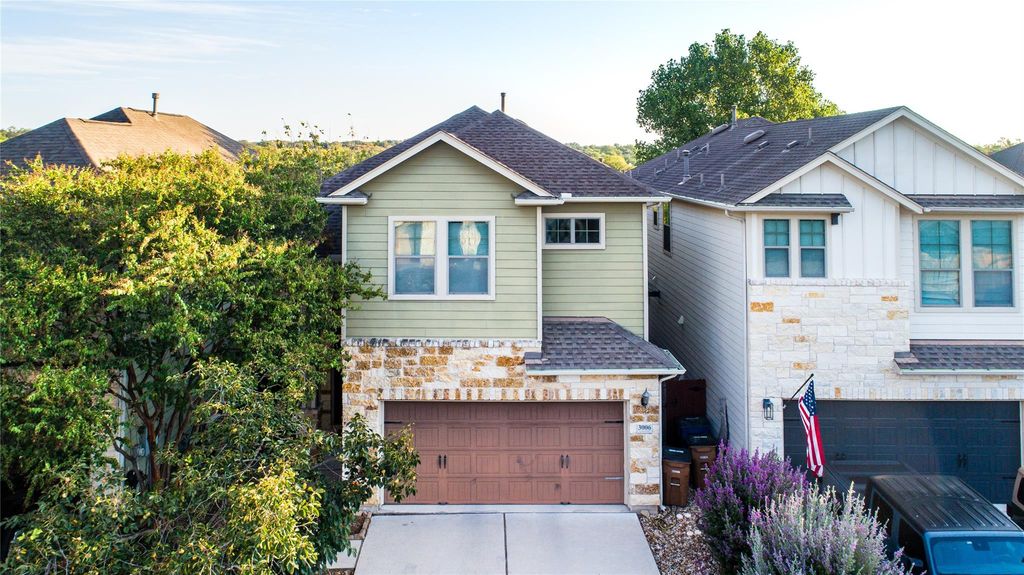Cozy, modern floorplan with huge back yard and gate access to greenbelt. Open Kitchen to Living room downstairs and separate office. Game room and 3 bedrooms upstairs. On a newly resurfaced, quiet little street just off Westgate. Cowan Elementary is a .7 mile walk away & 2.7 miles to Bowie HS. Persimmon Tree in front yard.