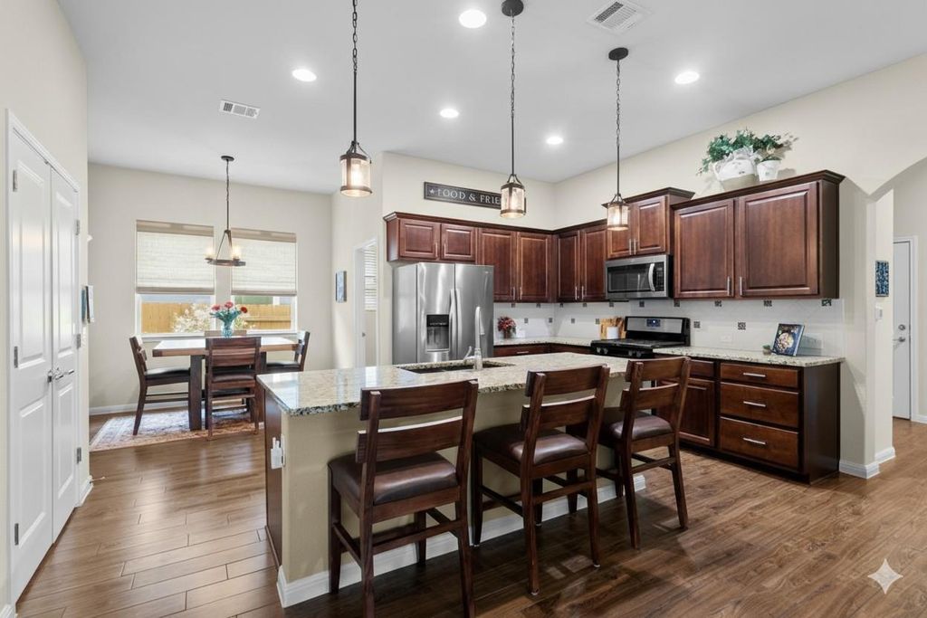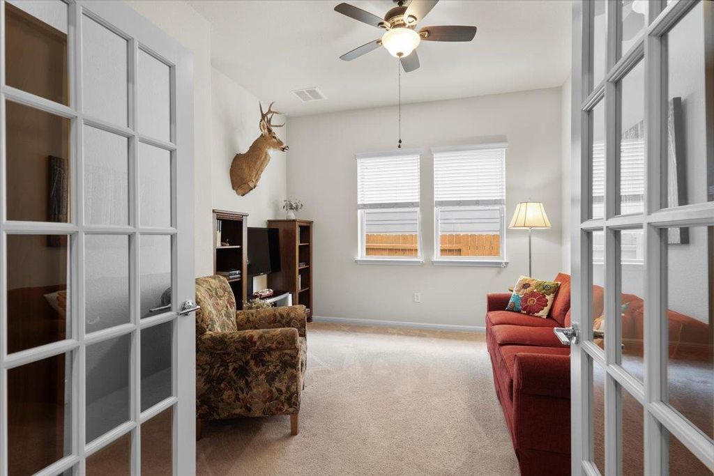 With a full-on secret garden in the back yard and lush landscaping in the front of the home, this is the perfect home for the gardening and outdoor enthusiast. The oversized, covered back patio is situated on the side of the home for maximum shade and privacy to sit and enjoy the many birds and butterflies who frequent the various flowering plants. Just a short walk to the Knob Hill trailhead, hop onto the trail system and enjoy the rest of the nature throughout the Easton Park neighborhood or walk straight to The Union amenity center, the food truck park, and more. The beautifully maintained single-story home offers a perfect blend of comfort, style, and functionality. Step inside to an open floorplan featuring 3 spacious bedrooms, 2 full bathrooms, and a dedicated home office with elegant French doors"”ideal for remote work or creative pursuits. The kitchen features granite countertops, stainless steel appliances, a center island, a charming breakfast area, and a large pantry for all your storage needs. The primary suite is a peaceful retreat looking out onto a beautiful flowering bush in the backyard. The primary bathroom is complete with a dual vanity, a roomy walk-in shower, and a generous walk-in closet. Located in the vibrant Easton Park community, residents enjoy access to resort-style amenities including a pool, fitness center, dog park, multiple playgrounds, hike & bike trails, and a calendar full of planned social events. Don't miss this opportunity to live in one of Austin's most sought-after neighborhoods!