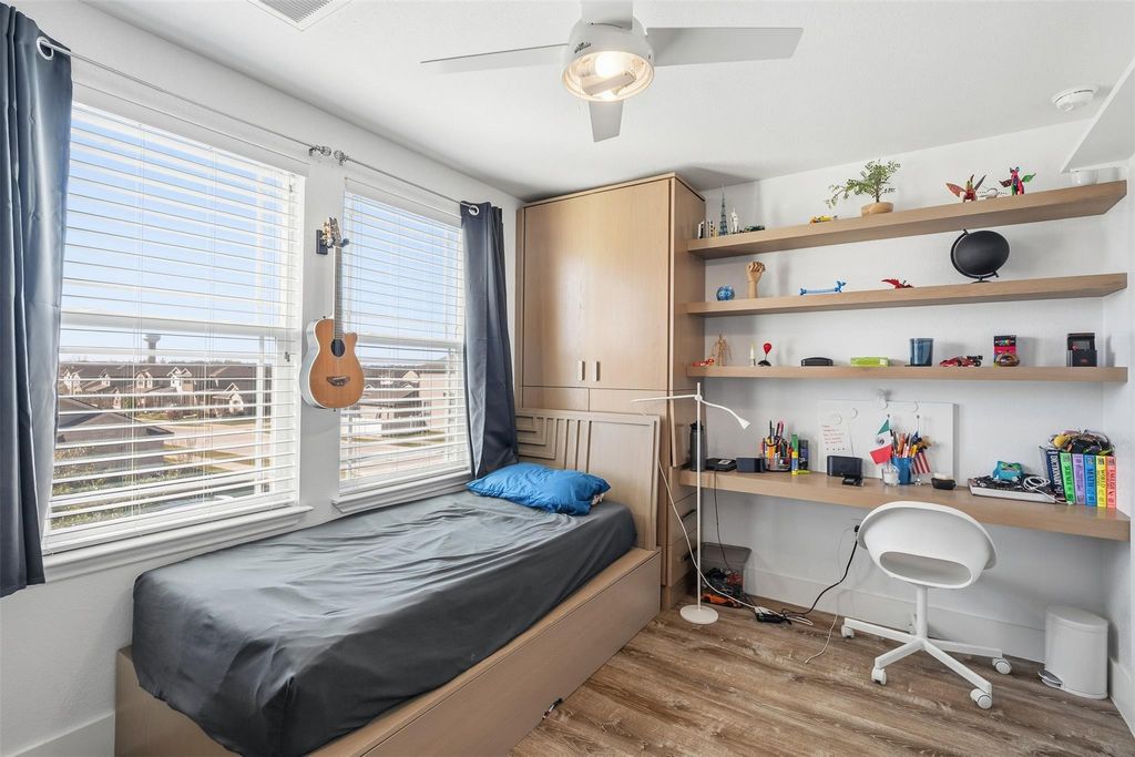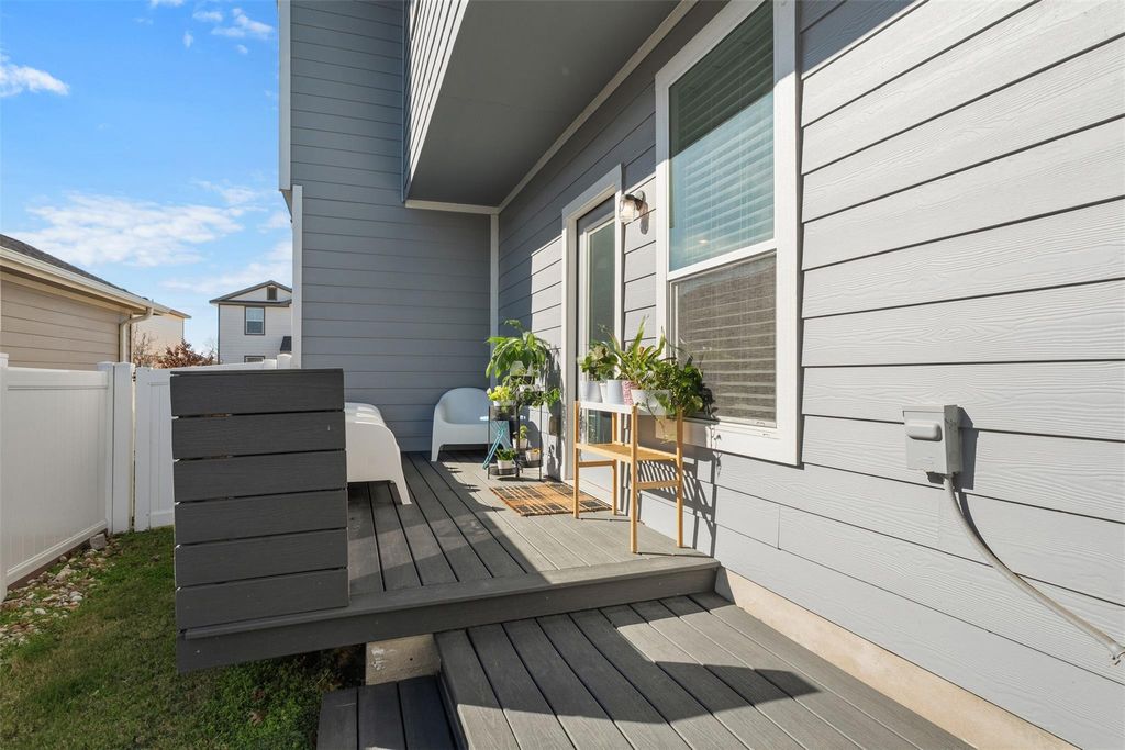 Modern 2nd-Story Living in Highland Park Experience elevated living in this beautifully maintained 2017-built home in Pflugerville's highly sought-after Highland Park. Offering 1,681 sq ft of thoughtfully designed space, this residence blends modern efficiency with custom, high-end upgrades that truly set it apart. Architectural Character & Custom Design From the moment you enter, the attention to detail is unmistakable. The first floor makes a statement with custom double doors on the flex room, unique beam ceilings, and elegant square-edge wall molding. The craftsmanship continues upstairs with: New iron stair railings and brand-new flooring throughout. Custom core closet doors featuring premium built-in cabinetry and shelving. Custom shelving made into the walls Designer shiplap accents and a cozy seating nook perfect for a reading corner. A private flex space behind a sliding door"”ideal for a home office or creative studio. Interior Highlights Gourmet Kitchen: Features granite countertops, stainless steel appliances, and a seamless flow into the living area for easy entertaining. Primary Retreat: A spacious sanctuary with a private en-suite bath and a superior walk-in closet system. Flexible Layout: 3 bedrooms and 2.5-3 baths provide ample room for guests or a growing household. Outdoor & Energy Efficiency Private Oasis: Fully fenced backyard perfect for BBQs, pets, or play. High Performance: Energy-efficient construction featuring a fully sealed Hardie plank exterior for enhanced thermal performance and lower utility costs. Convenience: Attached 2-car garage in a prime location. Don't miss the opportunity to own a home where every detail has been upgraded for quality and comfort. Schedule your tour of this Highland Park gem today!