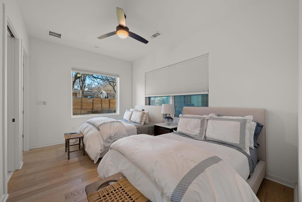 Located on a quiet, tree-lined street in the St. Elmo District / South Manchaca neighborhood, this practically new 2020-built corner home lives like a true single-family residence and offers exceptional privacy, space, and flexibility. Fully fenced and gated, the property features both a welcoming front yard and a spacious backyard shaded by mature Live Oak and Elm trees"”an ideal outdoor retreat in the heart of South Austin. The thoughtfully designed two-story layout includes 4 bedrooms and 3 full bathrooms, with a full bedroom and bath conveniently located on the main level, perfect for guests or multi-generational living. The open-concept main floor is filled with natural light and showcases hardwood floors throughout, custom window shades, and a beautifully appointed kitchen with a waterfall-edge island, bar seating, and seamless flow into the living and dining areas"”ideal for everyday living and entertaining. Upstairs, you'll find the primary suite, additional bedrooms, a full bath, and a second living or family room, perfect as a media room or play space. The primary suite offers a spa-like bathroom, an oversized walk-in closet, and a private balcony with peaceful treetop views. All bedrooms feature generous walk-in closets and large windows that enhance the home's bright, airy feel. Adding even more versatility is a detached bonus studio in the backyard, ideal for a home office, gym, creative studio, or flex space. With modern finishes, multiple living areas, and a prime location just south of 78704"”minutes from Radio Coffee, Veracruz, and other local favorites"”this home seamlessly blends comfort, style, and convenience in one of Austin's most desirable neighborhoods.