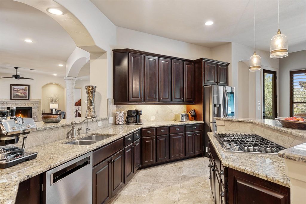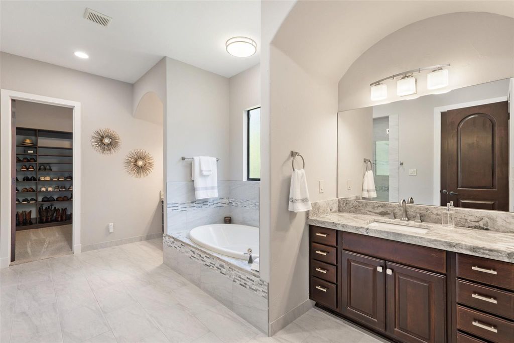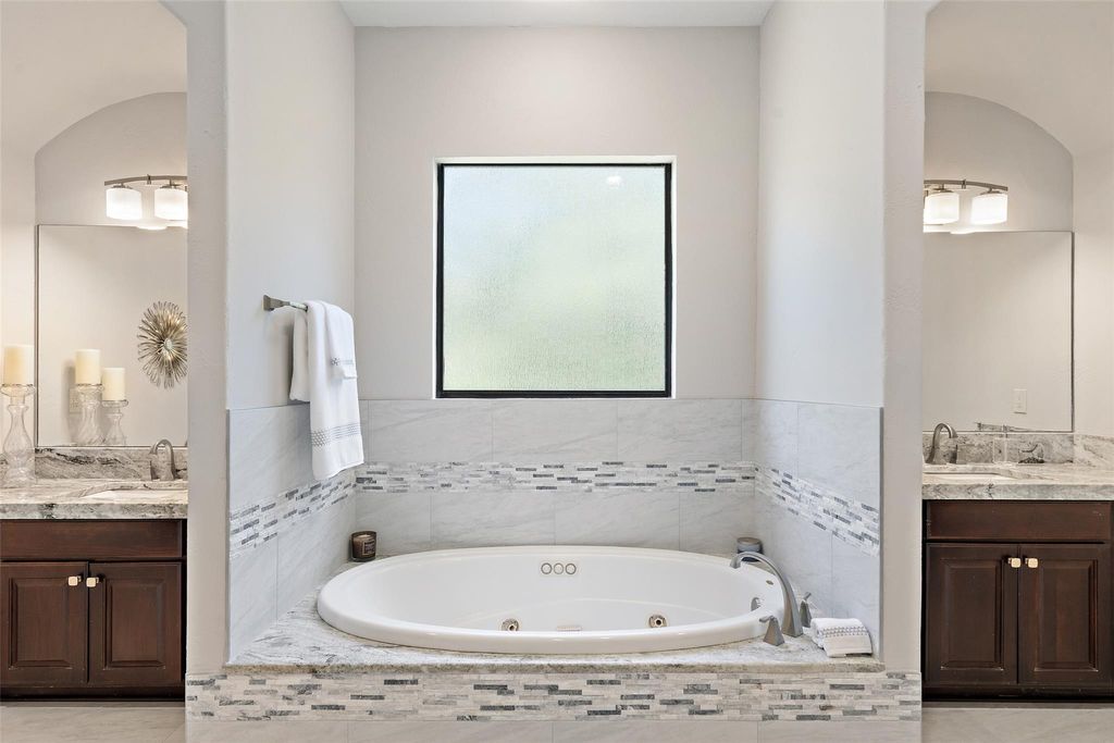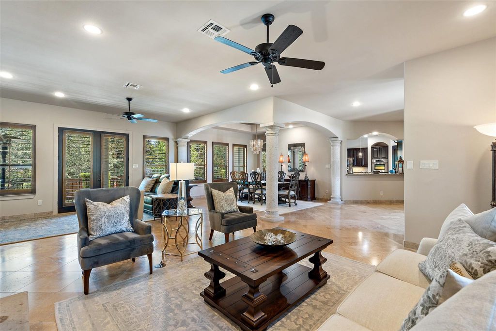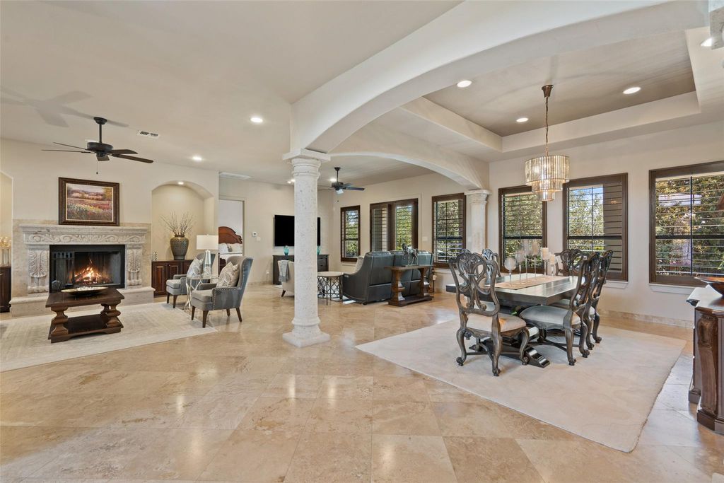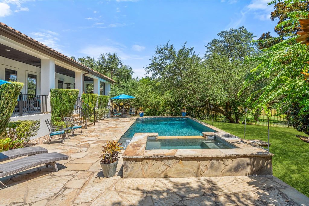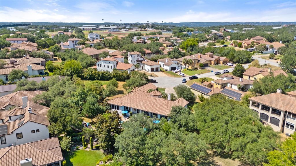 Elegant Mediterranean-Style Retreat with Heated Pool & Spa on Expansive Double Lot Tucked away at the end of a quiet cul-de-sac, this beautifully designed single-story Mediterranean-inspired home offers the perfect blend of timeless elegance, privacy, and modern comfort. Set on a premium double lot, this property is a rare find with its lush grounds, resort-style amenities, and graceful architectural details. From travertine tile and stately cement columns to soaring vaulted ceilings and elegant archways, every detail of this home has been thoughtfully curated to evoke classic Mediterranean warmth and sophistication. At the heart of the home, the expansive kitchen features a generous island, granite countertops, abundant cabinetry, and a sunny dining nook"”perfect for casual meals or entertaining in style. The home's open-concept layout is both functional and inviting. The spacious living room with a fireplace opens directly to the back patio, complemented by a formal dining room and an additional family/media room. The master retreat offers direct patio access, 2 spacious walk-in closets, and a beautifully remodeled en-suite bathroom with custom tile work, a jetted soaking tub, and an oversized walk-in shower. Step into your private resort-style backyard, where an oversized heated pool, spa and fire pit invite relaxation year-round. The expansive pool deck offers plenty of room for sunbathing and gatherings, while the large covered back patio is perfect for alfresco dining, grilling, or unwinding in the shade. A charming front courtyard with sitting area and tall palm trees sets the tone for the home's welcoming interior. For your vehicles and extra storage, a 3-car garage with epoxy floors and built-ins keeps everything organized and spotless. A secondary driveway with direct access from the cul-de-sac is perfect for storing a large boat or RV. Located in the Lake Travis School District less than 10 minutes from H-E-B, great shopping, restaurants and Lake Travis!