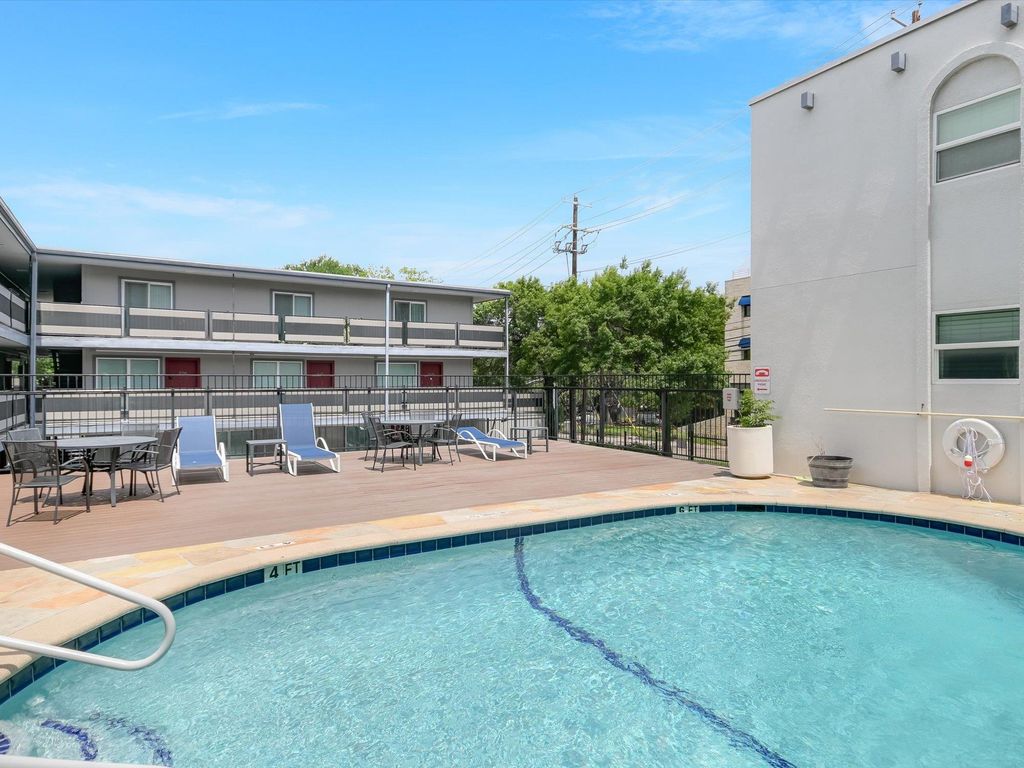 This stylishly updated 1/1 condo offers the perfect blend of location, comfort, & modern design.Situated just minutes from the UT campus, Dell Medical School, and downtown Austin, this unit is ideal for students, professionals, or anyone looking to enjoy the best of city living.Inside, you'll find contemporary finishes throughout, including wood floors, sleek Silestone countertops, stainless steel appliances, and a spacious breakfast island"”perfect for cooking and casual dining. The large bedroom features a generous closet. Additional perks include a gated entrance, reserved parking space, community pool, and negotiable washer, dryer, and refrigerator. This move-in-ready condo is a rare find in a prime location.