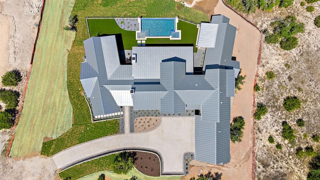 One of a kind, COMPLETED, luxury estate on a cul-du-sac in a large lot, gated, low tax community only 30 minutes to the airport and within minutes of the Hill Country Galleria, HEB, Whole Foods and Trader Joes! Serenity coupled with breathtaking views and PRE-APPROVED for a 900 sqft casita and 4th car garage, make this home on 2.6 acres so unique. Flanked by only one, distant neighbor and Little Barton Creek sitting below, the Texas hill country panoramic views take command. Facing NW, you'll enjoy substantial sunsets as well as shade throughout the day. Luxury finishes, a lovely pool surrounded by evergreen turf, outdoor kitchen and full second fireplace make alfresco living convenient. Six bedrooms, 5.5 baths, and multiple flex spaces(including a secret room!). This floorpan truly has it all! LTISD and tax rate 1.6%. Schedule a showing today. Easy show or preview. Agent is related to seller.