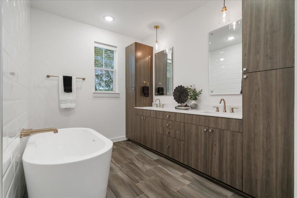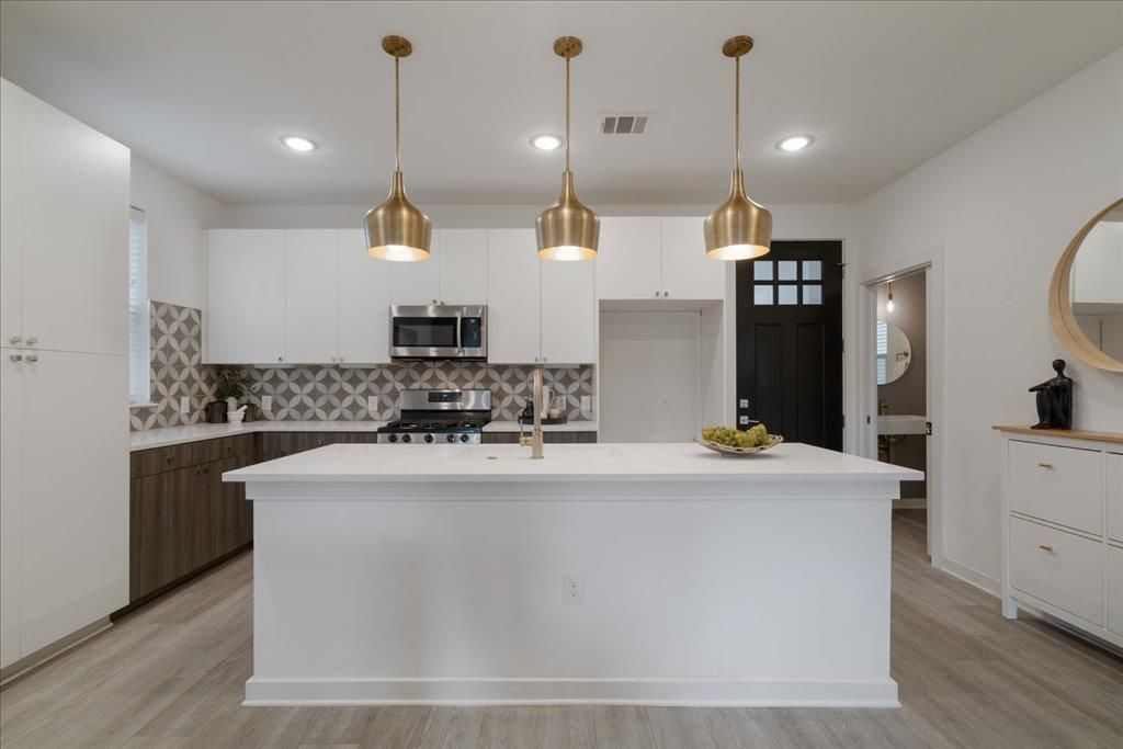 Modern 2-story condo in the heart of 78741! This stylish 3-bedroom, 2.5-bath end unit offers a fenced private outdoor space within a gated community. The open-concept floor plan is filled with natural light and includes an attached 1-car garage and 1-car carport. The sleek kitchen features quartz countertops, stainless steel appliances, modern hardware, and generous cabinet storage, opening seamlessly to the bright and light living area, perfect for entertaining. Primary bedroom featuring private en-suite with quartz countertop, dual vanity, garden tub, walk-in shower, and large walk-in closet. Two additional secondary bedrooms with high ceilings and recessed lighting, perfect for guests or working from home. Enjoy the private fenced backyard under mature shade trees while enjoying your coffee or entertaining on the covered patio. Community amenities include a private dog park and access to shaded walking trails. Conveniently located just minutes from Downtown Austin, South Congress shopping and nightlife, St. Edward's University, UT, Lady Bird Lake, and Austin-Bergstrom International Airport.