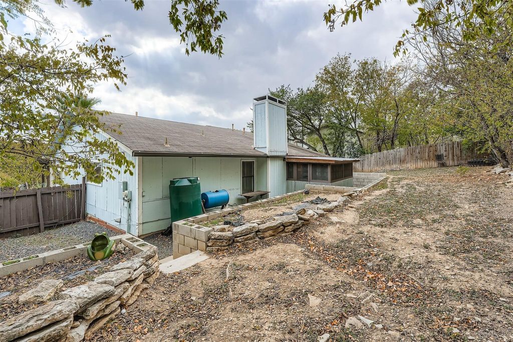 Welcome home to the Franklin Park neighborhood. Perched just above the street with welcoming palm trees and a terraced yard, this classic South Austin spot is ready for move-in. Exceptional layout, with the primary bedroom and bathroom being on level with the living and dining spaces. The two other bedrooms and a bathroom are down a few bookshelf-lined stairs towards the front of the house, making them feel like a distinct private area. Large living and dining area open to the kitchen. Rainwater collection tank and a garden area in back.