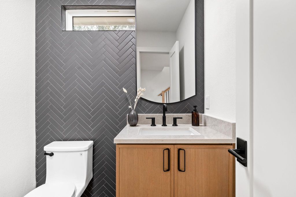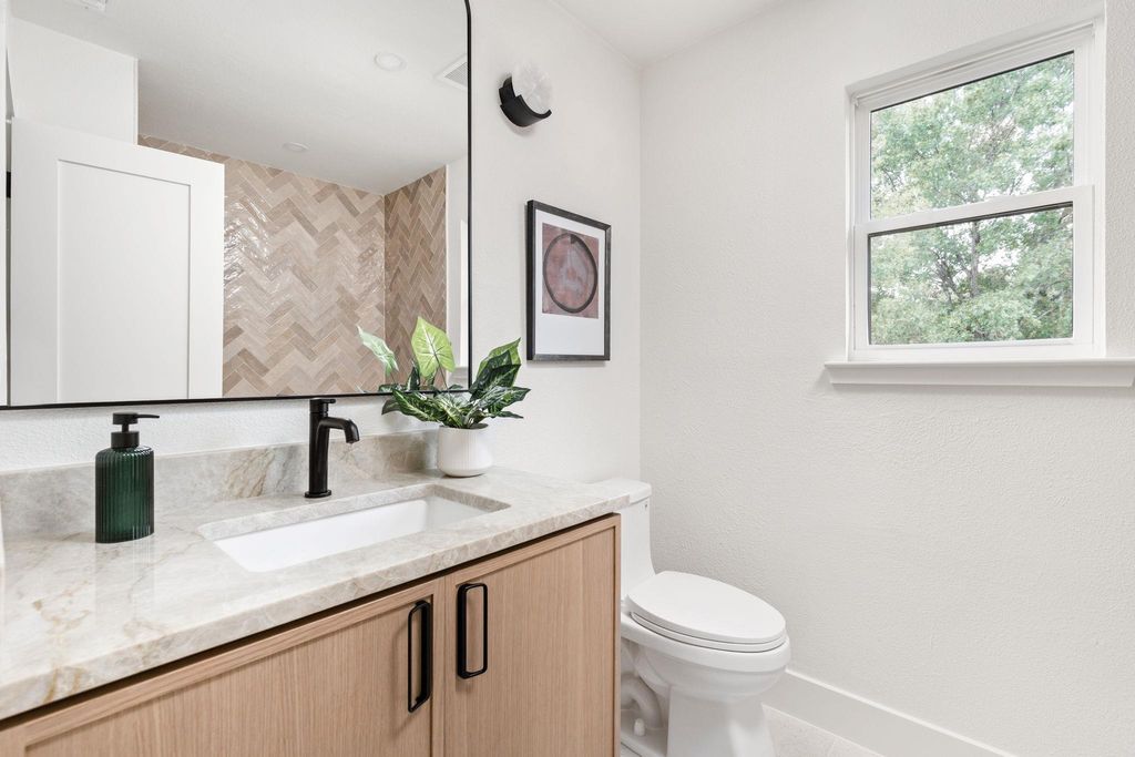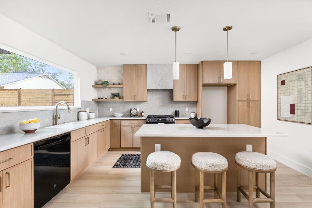 Urban Hills Design presents a stunning reimagined home in the highly sought after Cherry Creek neighborhood, set on a rare .44 acre lot. Privately situated on a wide street with no direct side neighbors, this home blends modern elegance with warm, timeless character. The exterior has been completely renewed with a new thirty year roof, new siding and paint, fresh landscaping, a new driveway, mahogany double doors, and a custom cedar mailbox. Inside, natural light fills the home through brand new double pane windows, creating an airy and inviting ambiance. Curated finishes flow throughout, including a white oak and iron staircase, luxury vinyl plank flooring, designer tile, new trim, and a custom electric fireplace that adds architectural polish. Major systems have been updated with a new HVAC system, new ducts, new PEX water lines, and all new plumbing fixtures. The kitchen is a standout with white oak inspired soft close cabinetry, quartz countertops with a matching backsplash, a custom quartz vent hood, and new black stainless appliances. The thoughtful layout provides both style and functionality, ideal for everyday living and entertaining. The bathrooms feel spa inspired with Taj Mahal quartzite, LED niche and under vanity lighting, a frameless glass shower panel, soft close toilets, and oversized designer mirrors. Every detail has been considered to create a serene, elevated experience. Outside is a private backyard sanctuary on an oversized lot. A vaulted patio cover with lighting and an outdoor fan sets the tone for relaxed evenings. Off the patio, a custom limestone fire pit creates an inviting place to unwind, adding warmth and atmosphere to the space. The brand new eight foot cedar fence offers privacy and room to expand or design an ADU. Surrounded by South Austin favorites Armadillo Den and Moontower. Minutes from Whole Foods and HEB this location offers true local charm with Downtown Austin only 7 miles away. Schedule your showing today.