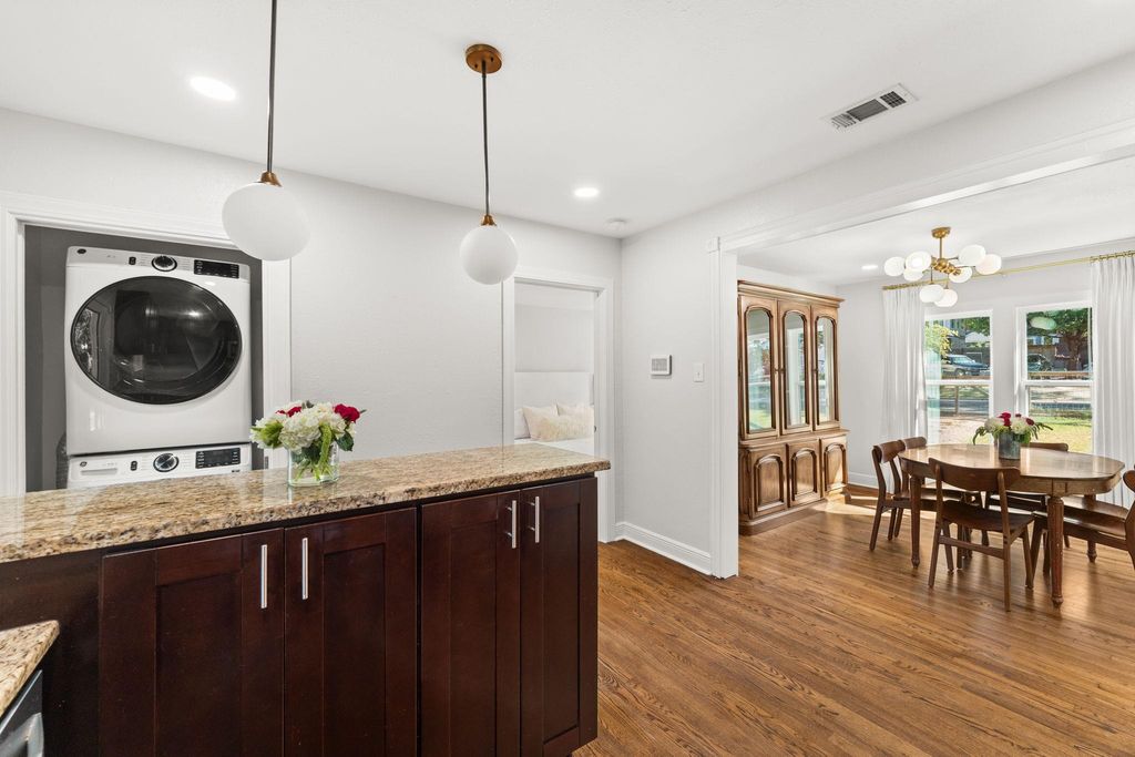 Welcome to your ideal East Austin retreat"”nestled just east of Downtown, this beautifully updated 1955 bungalow perfectly balances vintage charm with modern comfort. Featuring 3 bedrooms, 2 full bathrooms, and 1,158 square feet of thoughtfully designed living space, the home feels both refined and functional. The front and back yards are fully fenced, each with their own private patio areas, creating inviting outdoor spaces ideal for relaxing, entertaining, or simply enjoying Austin's year-round sunshine. Step inside to discover a light-filled interior with an open living and dining area that seamlessly connects to the kitchen. Modern finishes blend effortlessly with the home's original character. The kitchen features granite countertops, stainless steel appliances, ample cabinetry, and a breakfast bar"”a perfect setting for both everyday living and hosting. The primary suite offers a peaceful retreat with an en suite bath and walk-in shower, while two secondary bedrooms provide flexibility for children, guests, a home office, or creative space. Located in the heart of East Austin's vibrant Chestnut/Rosewood neighborhood, 1810 Sanchez Street offers unbeatable proximity to downtown, UT Austin, and the city's best local favorites along East 12th and Manor Road. Enjoy quick access to parks, restaurants, coffee shops, and the nearby MLK light rail station"”all while savoring the quiet, residential feel of this established community. Whether you're looking for a turnkey home close to the action or a charming urban hideaway, 1810 Sanchez Street delivers East Austin living at its best.