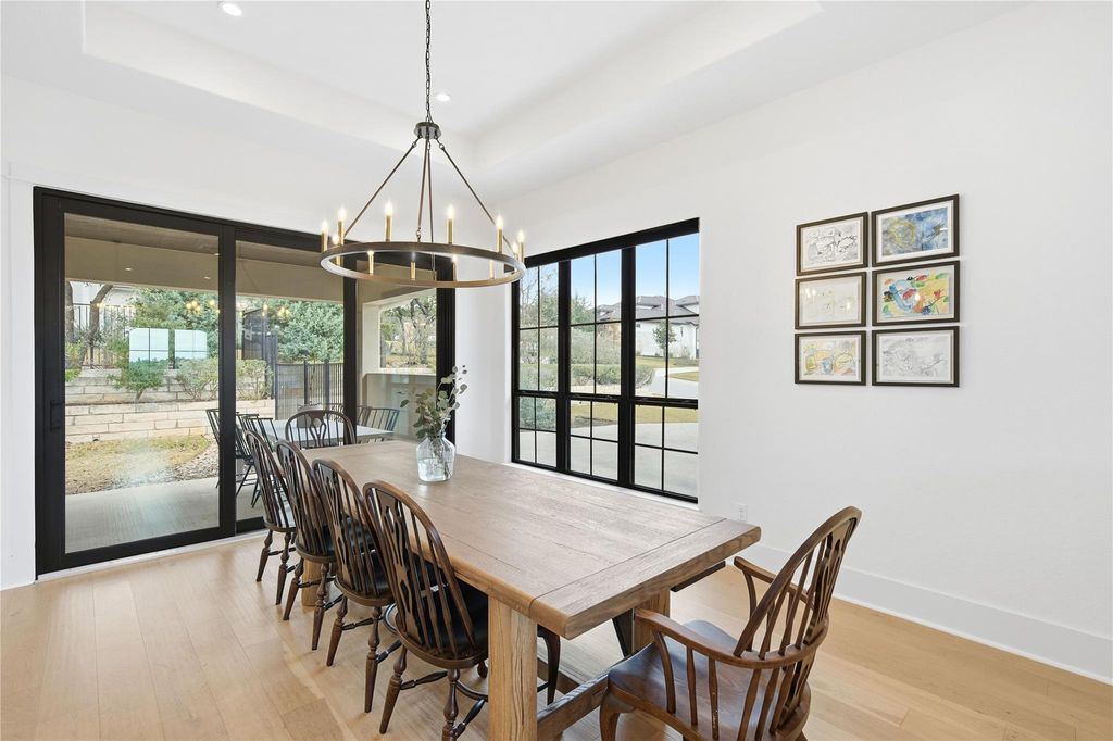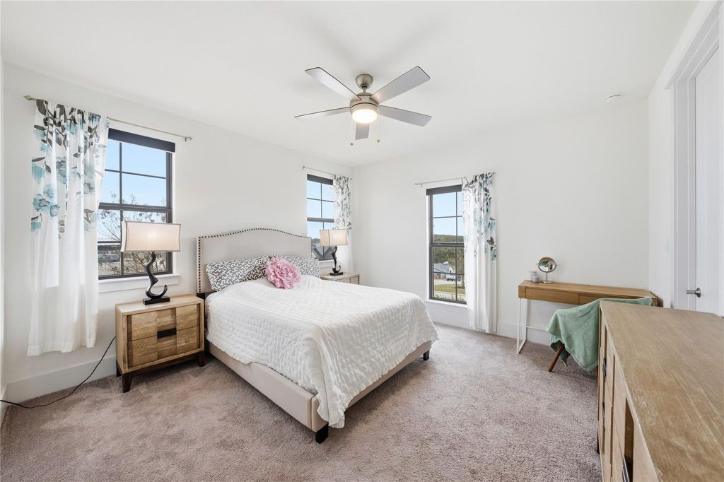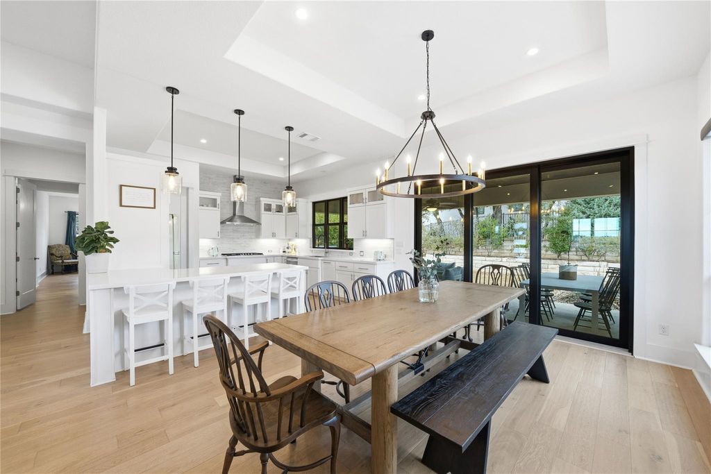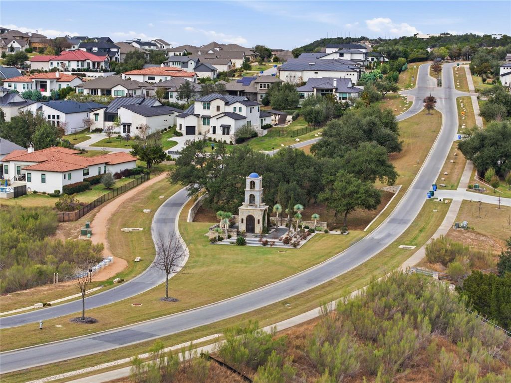 Your DREAM HOME has arrived! RARE SINGLE-STORY executive style home on large, LEVEL, CORNER LOT in exclusive SERENE HILLS! This is the one you've been waiting for with single-story living, 4 large bedrooms, all with ensuite baths, privacy and hill country views! Set atop a hill, this home features the uncommon mix of both community and privacy with its expansive, level back and side yards with plenty of room for play, entertaining, or use your imagination to create your own outdoor sanctuary. Outside, soak up the beautiful Santa Barbara style architecture with its distinctive Spanish Colonial Revival aesthetic, defined by stucco walls, red tile roof, and arched windows which create a classic, rustic yet elegant look. Enjoy stunning community hill country views from the elevated, covered front porch. Inside is all modern with beautiful wide-planked flooring and open concept living and dining room with a soaring fireplace creating a focal point. A pristine, white kitchen features expansive countertops, stainless steel appliances, display cabinetry and a sink overlooking the beautiful backyard. Three-way split bedrooms include a separate master wing, two bedrooms, each with their own full bath in another wing, and a private 4th bedroom and ensuite bath in it's own separate area. A lovely office niche is situated just off of the main living area. Large sliding glass doors open to a spacious back patio with new outdoor kitchen with gas grill. Enjoy creating memories in this one-of-a-kind enclave with playground and miles of wooded trails suited for jogging, hiking and mountain biking. Ideally situated feeding to A-rated schools in Lake Travis ISD. *INQUIRE about a lender-funded 1-0 Temporary Interest Rate buy down with a lower interest rate in the first year of the loan with preferred lender*