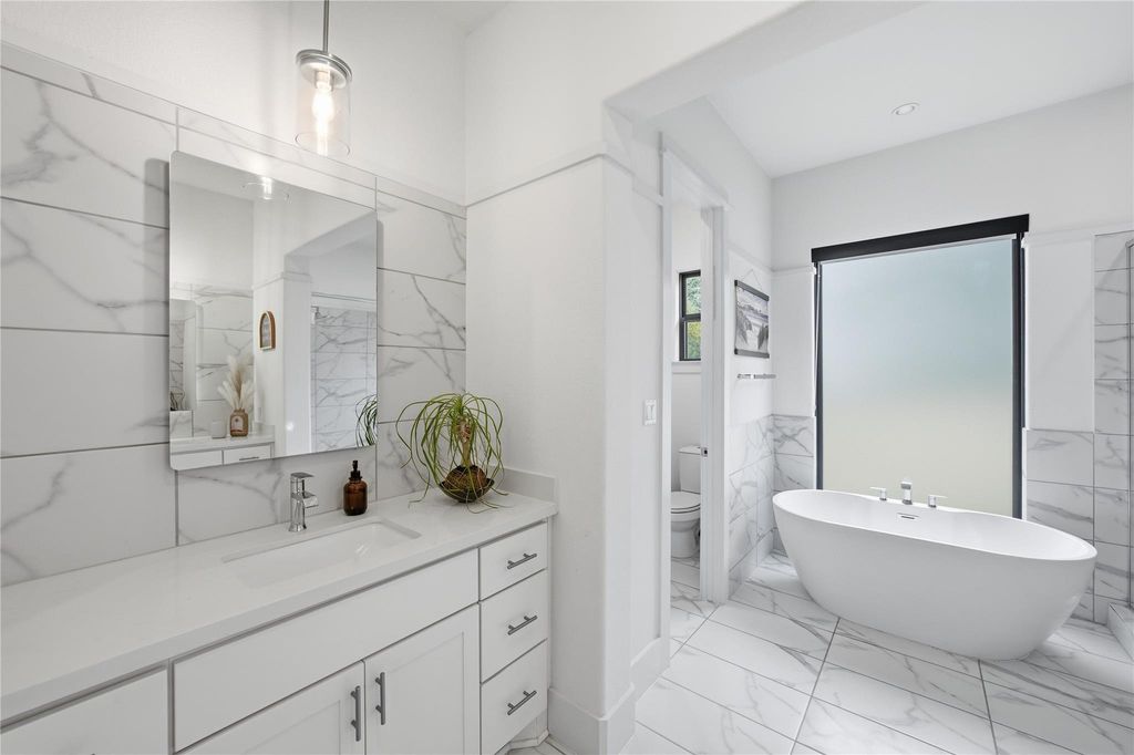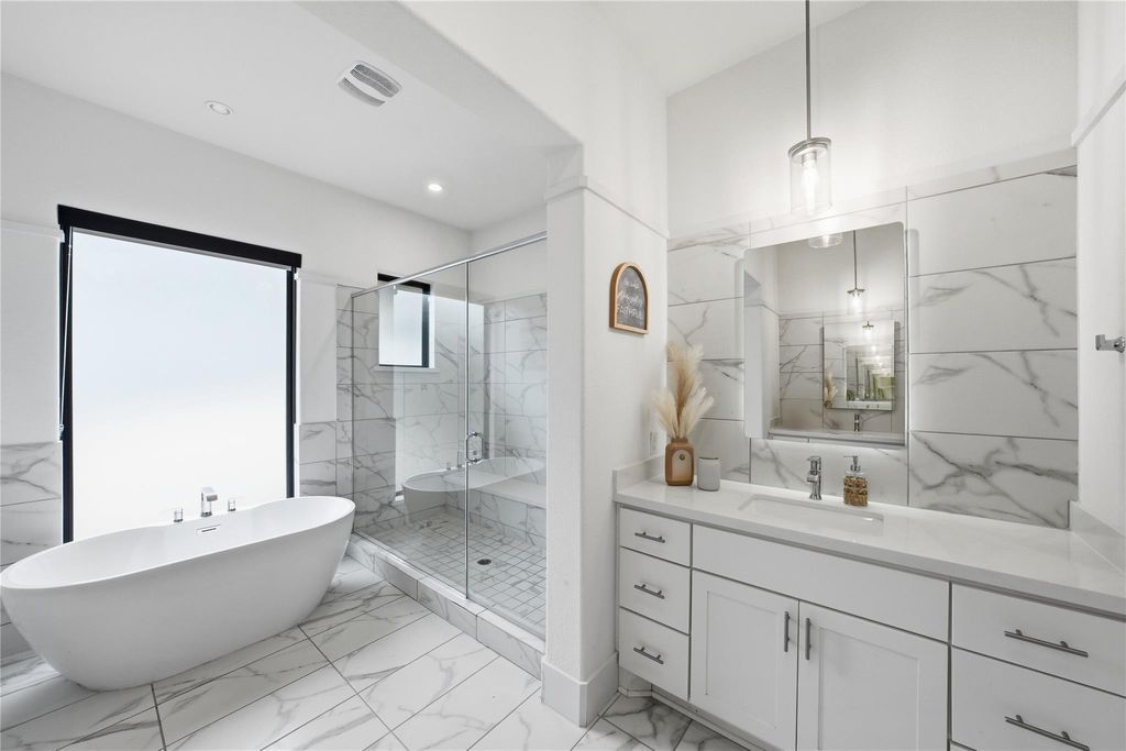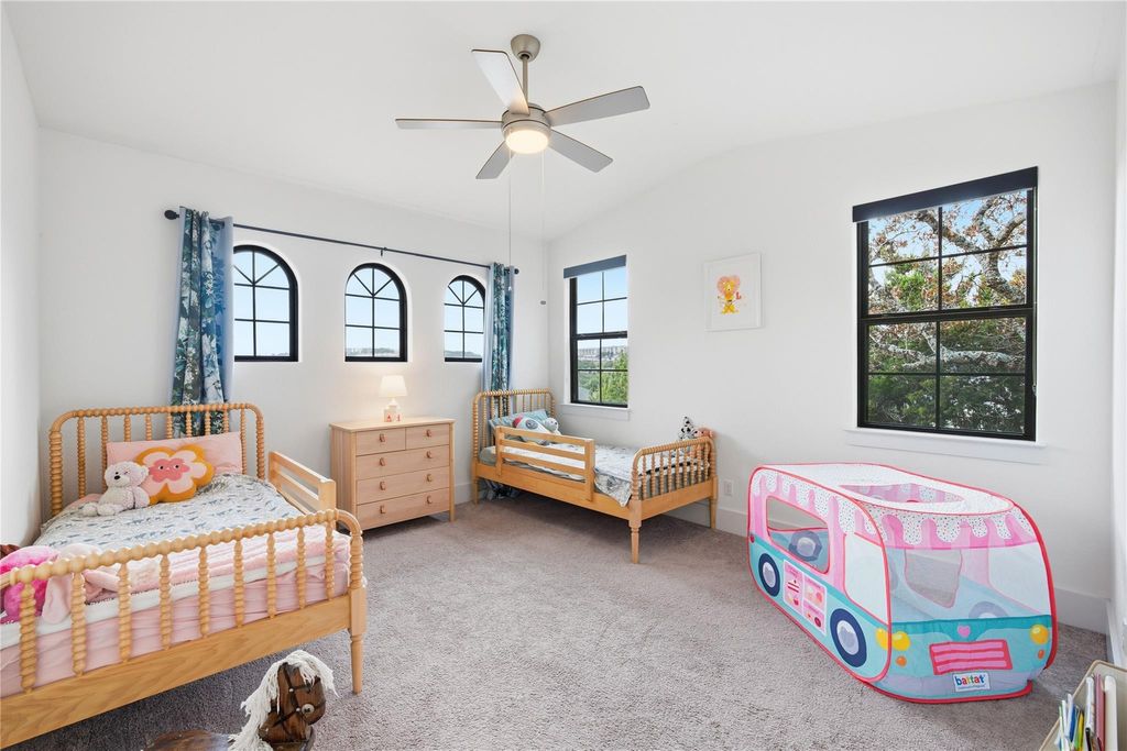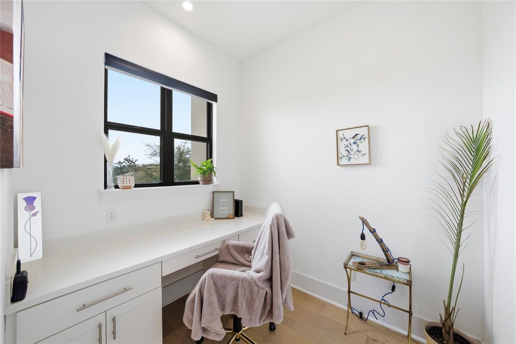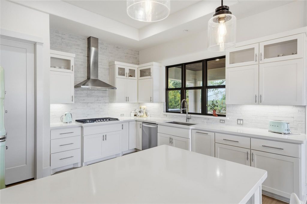 Your DREAM HOME has arrived! RARE SINGLE-STORY executive style home on large, LEVEL, CORNER LOT in exclusive SERENE HILLS! This is the one you've been waiting for with single-story living, 4 large bedrooms, all with ensuite baths, privacy and hill country views! Set atop a hill, this home features the uncommon mix of both community and privacy with its expansive, level back and side yards with plenty of room for play, entertaining, or use your imagination to create your own outdoor sanctuary. Outside, soak up the beautiful Santa Barbara style architecture with its distinctive Spanish Colonial Revival aesthetic, defined by stucco walls, red tile roof, and arched windows which create a classic, rustic yet elegant look. Enjoy stunning community hill country views from the elevated, covered front porch. Inside is all modern with beautiful wide-planked flooring and open concept living and dining room with a soaring fireplace creating a focal point. A pristine, white kitchen features expansive countertops, stainless steel appliances, display cabinetry and a sink overlooking the beautiful backyard. Three-way split bedrooms include a separate master wing, two bedrooms, each with their own full bath in another wing, and a private 4th bedroom and ensuite bath in it's own separate area. A lovely office niche is situated just off of the main living area. Large sliding glass doors open to a spacious back patio with new outdoor kitchen with gas grill. Enjoy creating memories in this one-of-a-kind enclave with playground and miles of wooded trails suited for jogging, hiking and mountain biking. Ideally situated feeding to A-rated schools in Lake Travis ISD. *INQUIRE about a lender-funded 1-0 Temporary Interest Rate buy down with a lower interest rate in the first year of the loan with preferred lender*