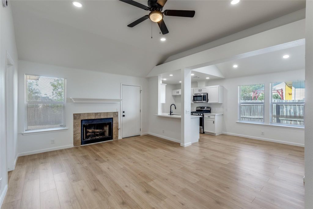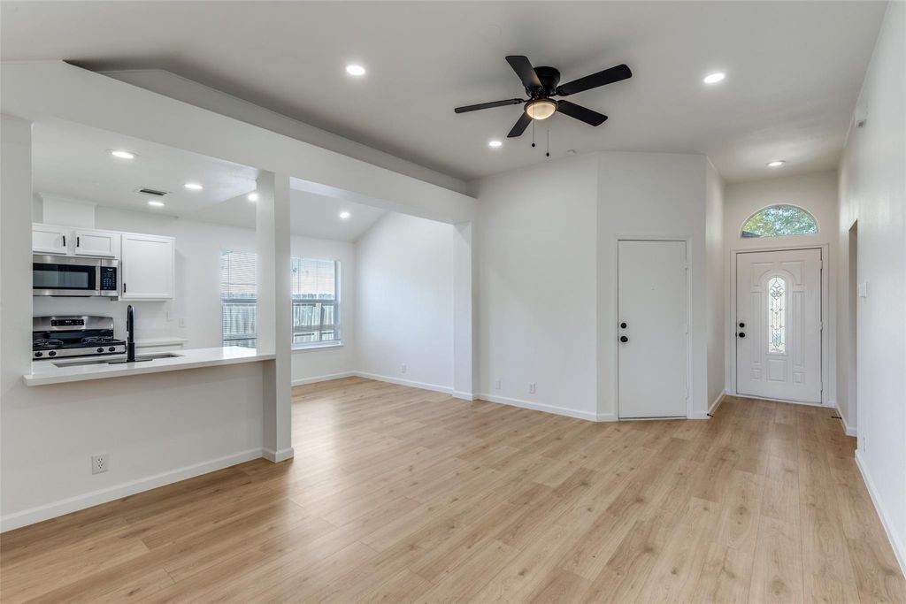 Welcome home to your updated 3-bed, 2-bath in Moores Crossing"”a single-story layout with 1,364 sq ft that lives big. You'll love the bright open living room with vaulted ceiling, recessed lighting (October 2025) and a cozy gas-log fireplace. The kitchen is set up for everyday ease with quartz counters, breakfast bar, pantry, and new stainless gas range + dishwasher. Fresh upgrades include wood-style LVP flooring, pure-white interior paint, black-matte fixtures/door hardware & ceiling fans, and an epoxy-finished 2-car garage floor. The split plan gives you a private primary suite (vaulted ceiling, recessed lighting, walk-in closet) and two secondary bedrooms near the hall bath. Outside, the oversized 9,165 sf cul-de-sac lot delivers a wide backyard with mature trees and plenty of room to play or garden. Central air + electric heat, tile surrounds in baths, and a true laundry room round out the essentials. Zoned to Del Valle ISD (Popham ES, Del Valle MS/HS). Ready to move in and enjoy. Next steps: Contact your banker/lender for proof of funds or pre-approval, then have your Realtor schedule a tour and submit your offer. No agent? Our team can help you make this home yours.