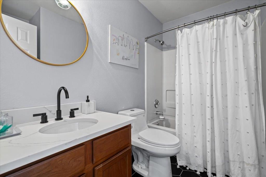 Loving maintained and designer upgrades to this home in the cozy neighborhood of Ashbrook. Beautiful floors, countertops, appliances and bathrooms. This wonderful 3 bedroom, 2.5 bath home has a huge family room, exquisite dining area and a kitchen your family and friends will envy. Upstairs you'll find an oversized Primary Bedroom and Bath plus 2 additional bedrooms and a hall bath. The "loft" upstairs is a bonus room that can be used as an office or second living area. The HVAC was replaced in 2022, energy efficient "Renewal by Anderson" windows were installed upstairs in 2025 and high-end ceiling fans were installed to keep the cool air moving. The large and fenced back-yard provides room to play and a covered patio for entertaining. A convenient two-car garage plus driveway parking keeps your vehicles off the street. This excellent location provides quick access to FM1626, I-35 and S. MoPac. Just minutes to the Menchaca Road corridor of restaurants and bars and Southpark Meadows shopping.