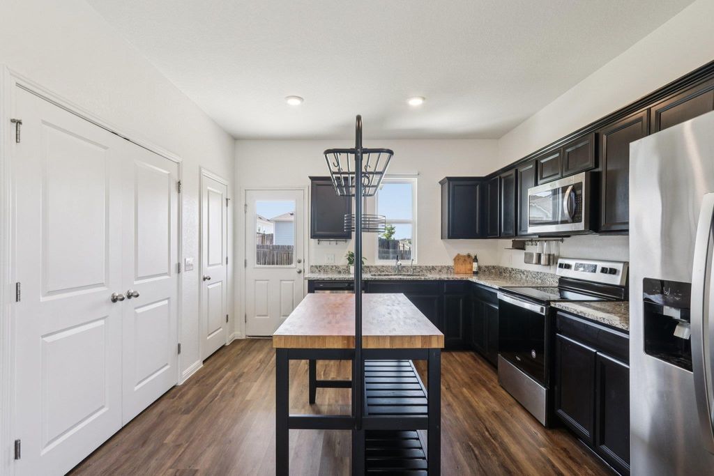 This charming 3-bedroom, 2-bath affordable home in East Pflugerville is the perfect blend of comfort and convenience. Built in 2020, the home feels fresh and inviting with recent paint, airy interiors, and abundant natural light throughout. The open kitchen to the living area has ample cabinet space and granite countertops. Sitting on a corner lot, home offers a covered back patio, and access to fantastic HOA amenities, including a pool, half basketball court, volleyball court and scenic trails, all in the super cute community of Vine Creek offering amazing value. For the outdoor enthusiast, you have Lake Pflugerville nearby, Blackhawk Golf Course, and Northeast Metropolitan Park. Close to schools, shopping, highways and toll. Ask your me about special financing! Refrigerator, washer and dryer come with the home!