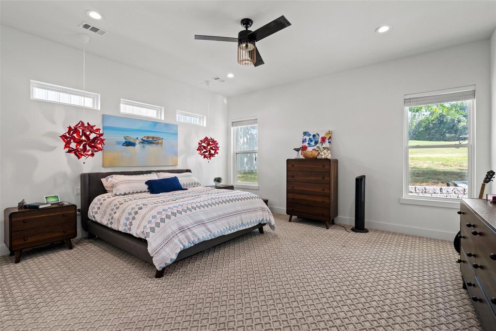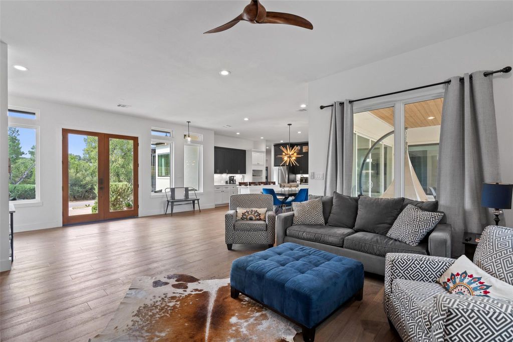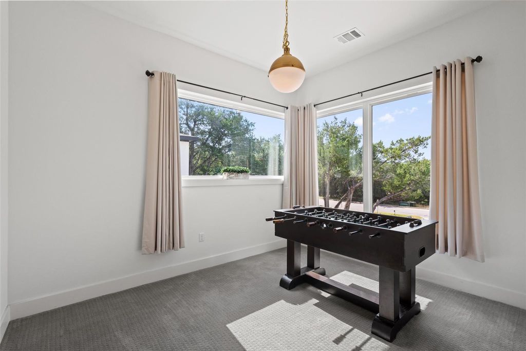 Stunning, modern-contemporary Point Venture home nestled just yards from Hole 9 of the Point Venture Golf Course. Intentional architectural designs create a truly unique and one-of-a-kind home. Every space given careful thought, welcoming family and guests to share in those special moments. Gather around the oversized island built out for dining and bar-top seating and stay connected. Spread the festivities outdoors onto the covered dining and entertaining patio. Grand primary bedroom with beautifully finished primary ensuite featuring an oversized soaking tub, expansive walk-in shower, and owner's dressing room. Just off the kitchen, owners can enjoy a room customizable to their liking. Enormous amounts of natural light cascade the walls in what could be your private office, library, or hobby room. Need extra space for games or guests, it can work for that too with a full bathroom next door. Across the heart of the home you'll find three additional bedroom spaces each finished with style. The additional bedroom at the front of the home is complete with a private ensuite bathroom including walk-in shower, vanity, and storage cabinets. To the back of the home with golf course and natural wooded views, you'll find bedrooms adjoined by a shared bathroom complete with a walk-in shower, shared double-sink vanity space, and large walk-in closets. Whether you love to be outdoors swimming, boating, or golfing, or you love to look at nature through gorgeous picture windows, this home compliments any lifestyle. Your home sweet home is waiting!
