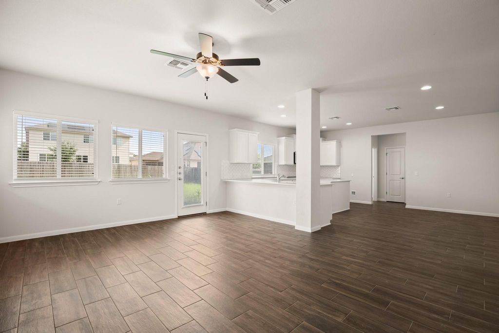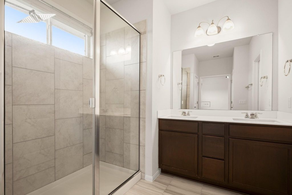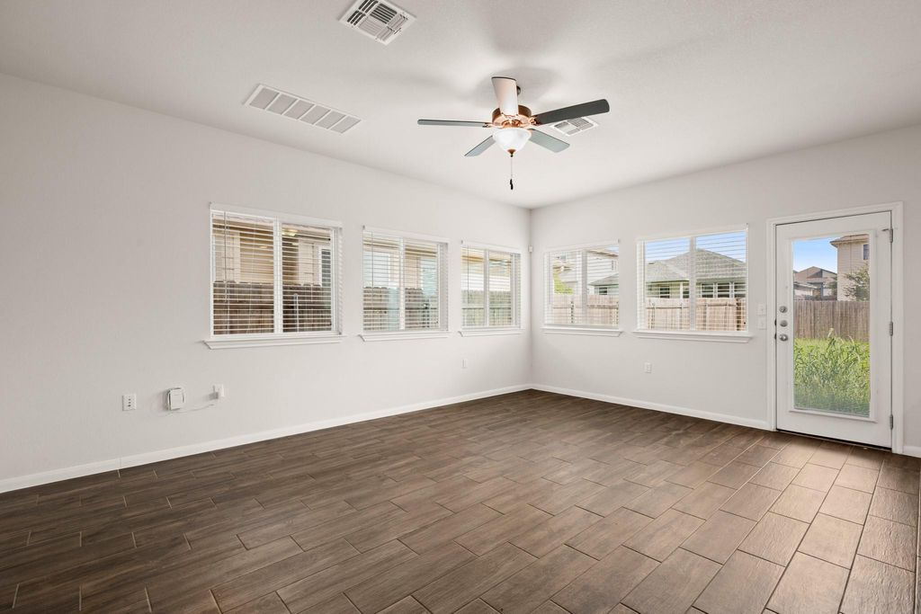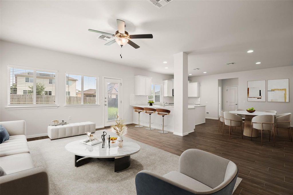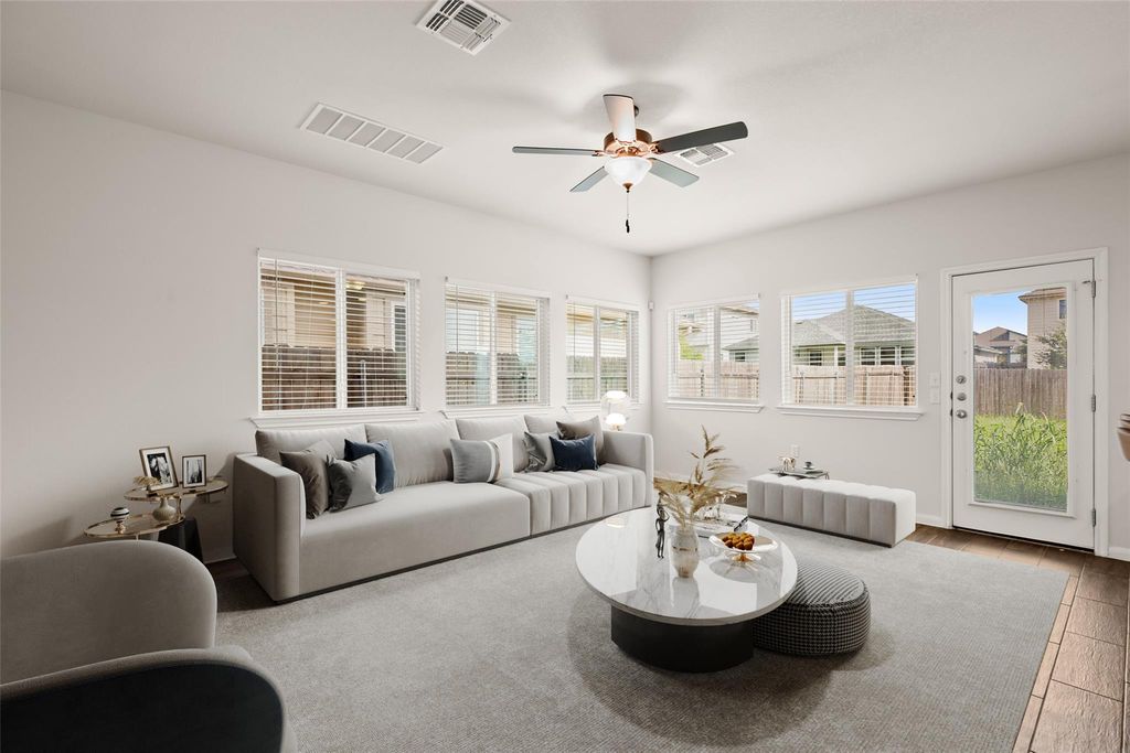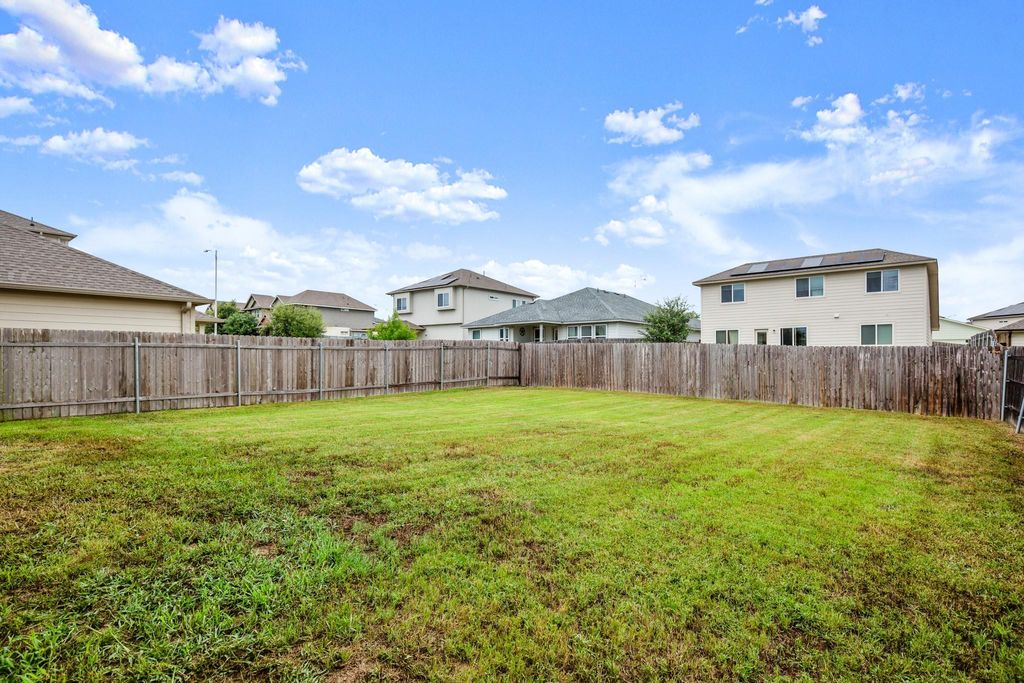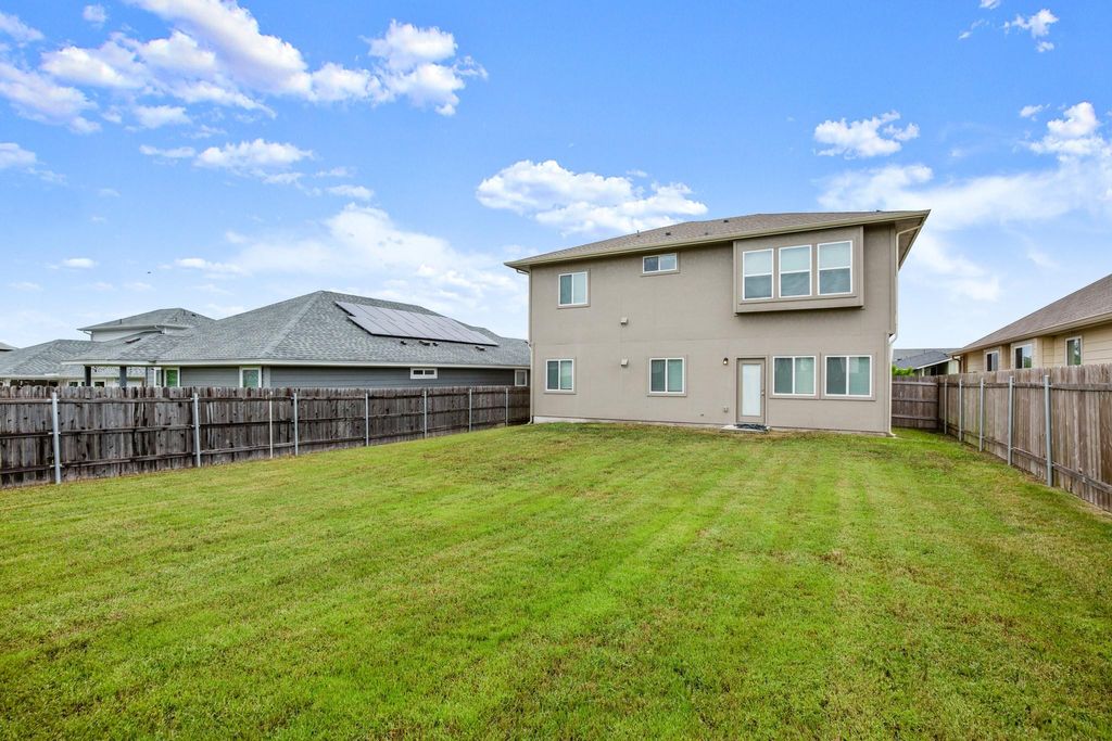 Nestled in the charming Whisper quiet community of Whisper Valley, 9908 Dalliance LN presents an opportunity to own a home in great condition. This community boasts as a tech-forward net-zero approach to living. By combining solar energy production, an energy-efficient construction, geothermal heating and cooling, and conservative energy use, this home has the potential to generate all of the energy needed for its homeowners. The garage is pre-wired for electric vehicles. The home is wired for fiber internet with Google Fiber. The heart of this home lies in its beautifully designed kitchen, complete with a large kitchen island where memories are waiting to be made. Shaker cabinets provide ample storage, while stone countertops offer a touch of elegance, perfectly complemented by a stylish backsplash. The living room is a bright and airy space. The double vanity in the primary bathroom allows for a harmonious morning routine, and the tiled walk-in shower offers a relaxing escape. The ensuite bathroom is attached to one of the bedrooms. This home features three bedrooms and three bathrooms, a laundry room for convenience, and a fenced backyard providing a private outdoor space. The home includes a balcony where the homeowner can relax. A two-car garage offers ample space for vehicles and storage. The walk-in closet provides storage space. The open floor plan allows for a seamless connection between spaces. This 2020 build is a modern sanctuary awaiting its new homeowner.