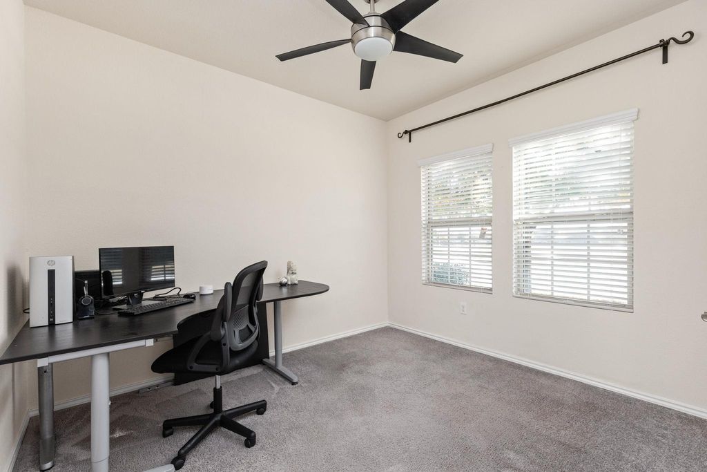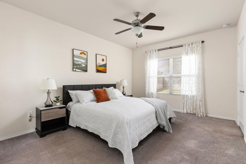 Welcome to this well-appointed 4-bedroom home in the desirable Colorado Crossing community, offering a functional layout, modern upgrades, and an unbeatable Southeast Austin location. Built in 2017, this home features the primary suite on the main level, 2.5 bathrooms, an office/flex room, and two spacious living areas, providing flexibility for everyday living, entertaining, or working from home. The kitchen opens seamlessly to the main living space and is complemented by thoughtful upgrades including a whole-house water filtration system, water softener, irrigation system, and solar panels, offering comfort, efficiency, and long-term savings. Natural light fills the home, and the additional upstairs living area creates a perfect retreat for media, play, or guest space. Enjoy the convenience of living just minutes from McKinney Falls State Park, offering hiking, biking, and swimming, as well as nearby Onion Creek Greenbelt trails. Daily essentials and retail are easily accessible at Southpark Meadows, with popular dining and shopping options including H-E-B, Target, Costco, Torchy's Tacos, Summer Moon Coffee, and EVO Entertainment. Downtown Austin, Austin-Bergstrom International Airport, and major employers are all within a short drive, making this location ideal for both commuters and lifestyle seekers. Colorado Crossing residents appreciate neighborhood sidewalks, nearby parks, and easy access to IH-35 and Highway 183, connecting you quickly to everything Austin has to offer.