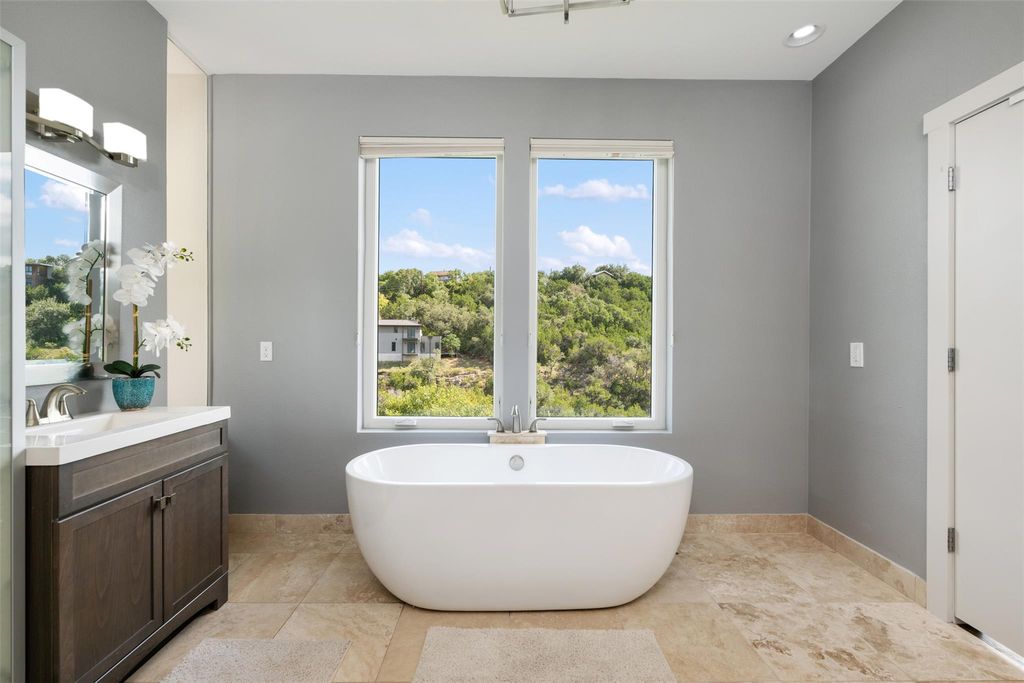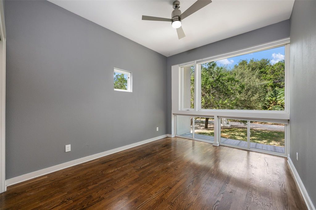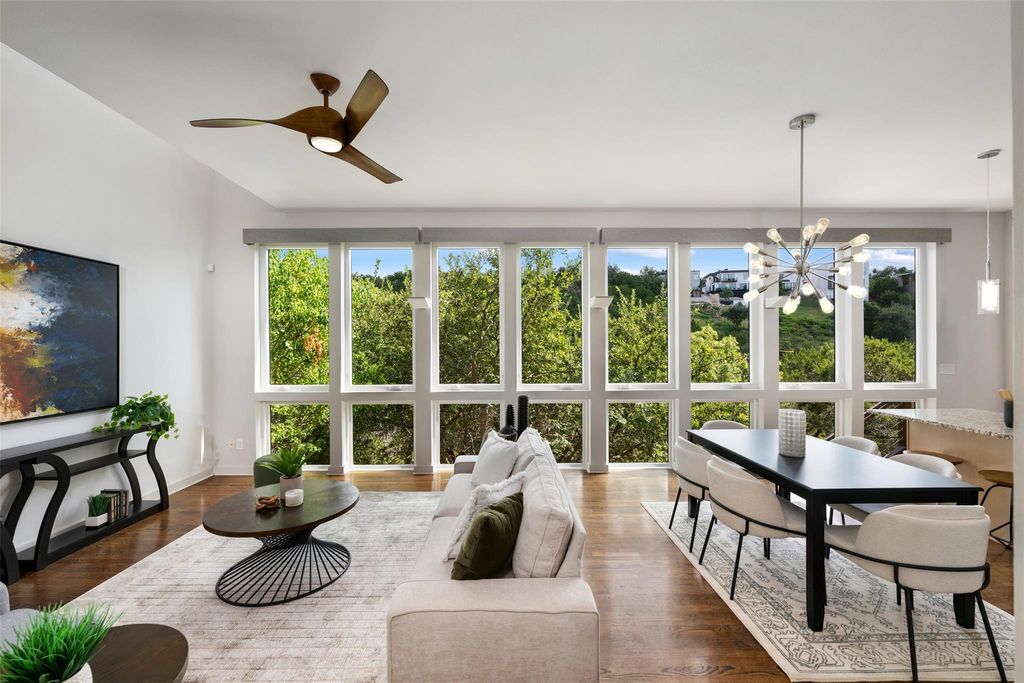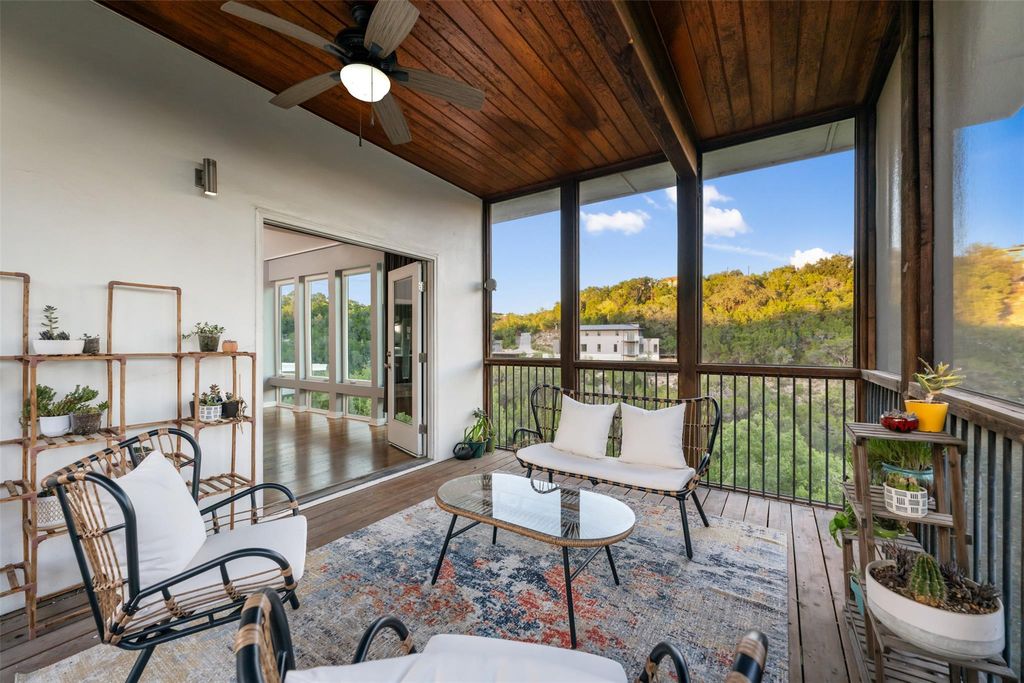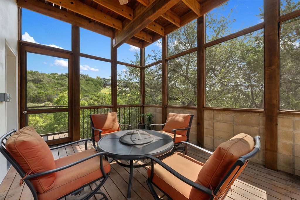 One of only 22 developed homesites backing Apache Lake under $1M with direct lake & canyon frontage. Only 7 Apache Lake -backing homes sold in the last decade, opportunities like this are exceptionally scarce. Priced 183k under appraised value. Tree House contemporary Architecture perched above the Hill Country canyon view designed with floor to ceiling windows, spa like primary features & multi-level indoor/outdoor entertainment space both screened & opensky. Located within Lake Travis ISD & in one of the last remaining communities with direct Lake Austin access, Apache Shores offers a private boat ramp, lakeside park & picnic area, pool, tennis, and waterfront day-use spaces"”a rare lake lifestyle that is becoming harder & harder to find. Priced below comparable market value for water-backing properties, this home represents a compelling opportunity for the buyer who knows that the best investments are the irreplaceable ones.