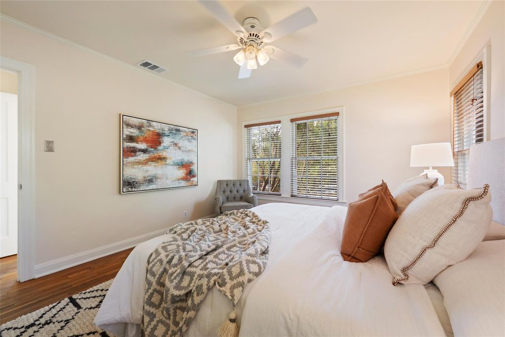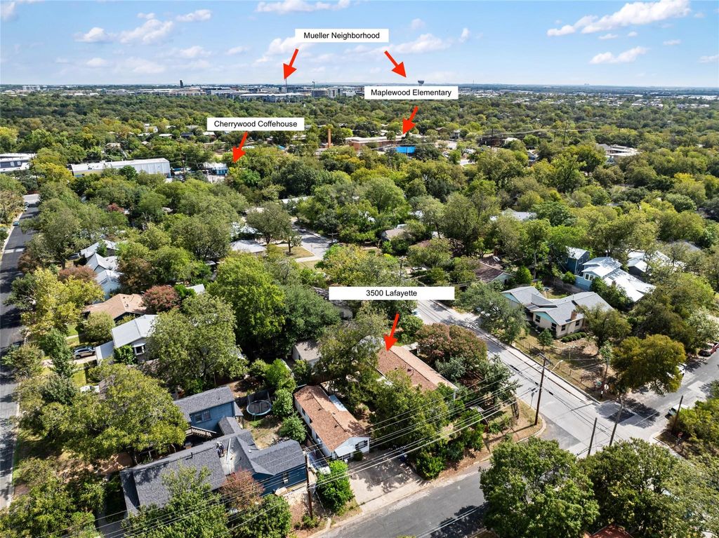 Welcome to this classic East Austin bungalow on a coveted corner lot in popular Cherrywood. The main house spans 1,080 square feet with three bedrooms, one updated full bath, and original hardwood floors. A detached 392-square-foot, guest house currently rents at $1,100 a month and offers a full bedroom and bathroom"”ideal for steady rental income or guest accommodations. Out back, a large deck and treehouse create a private retreat for entertaining or relaxing under the trees. Both dwellings share a storage shed and laundry area. The location is an Austinite's dream: stroll to Cherrywood Coffeehouse and the restaurants along Manor Road, or bike to Hyde Park, Mueller's shops and green spaces, and the University of Texas. Zoned to popular schools, including Maplewood Elementary. Move-in ready as-is, this bungalow also presents opportunities for a thoughtful renovation, an investment purchase, or even a complete rebuild"”taking advantage of Austin's evolving development regulations.