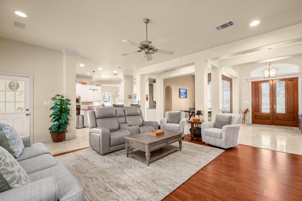 Located in the expansive grounds of Barton Creek Lakeside, this expansive one-story home at 26801 Founders Place offers a peaceful Hill Country lifestyle on a 0.689-acre corner lot. Surrounded by natural beauty and set on a serene, oversized parcel, the home delivers space, privacy, and everyday comfort in one of Spicewood's most sought-after lake communities. The thoughtfully designed floor plan lives large and flows effortlessly, featuring three bedrooms, two and a half baths, a welcoming living room, breakfast area, formal dining room, and a dedicated office with an additional office nook. The open layout connects the main living spaces, creating an inviting setting for both daily living and entertaining. A three-car garage with extra workshop or storage space, along with ample driveway parking, adds practicality and flexibility. Life in Barton Creek Lakeside comes with an unmatched amenity package, including Lake Travis access, a community boat ramp, private marina with leased slips, seven man-made lakes, community parks, and high-speed fiber optic service available to every home. Optional membership in the Omni Barton Creek Country Club at Lakeside or Omni Barton Creek Country Club provides access to casual and fine dining, an 18-hole Arnold Palmer golf course, Olympic-size pool, fitness center, and tennis and pickleball courts. Beyond the gates, enjoy the best of Spicewood living with nearby attractions such as Lake Travis, Pace Bend Park, Krause Springs, and scenic Hill Country drives. Local favorites like Opie's Barbecue, Angel's Icehouse, and area wineries are just minutes away, with Austin within easy reach. This Barton Creek Lakeside home offers the perfect blend of space, tranquility, and resort-style living in the heart of the Texas Hill Country.