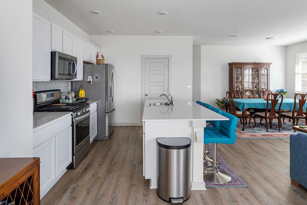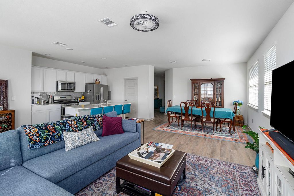 Located in the established ShadowGlen community, this single-story home offers a smart, functional layout designed for comfort, efficiency, and everyday living. This home centers around an open living, dining, and kitchen space that flows naturally and makes excellent use of square footage. The kitchen anchors the home with a spacious island, ample cabinetry, and clear sightlines into the main living area"”ideal for daily routines and casual entertaining. Natural light fills the interior, enhancing the home's clean lines and practical design. The private primary suite is set apart from secondary bedrooms, creating a quiet retreat with an en-suite bath and generous space. Secondary bedrooms offer flexibility for guests, work-from-home needs, or additional living areas. The backyard backs to a retention pond, providing added separation from rear neighbors and a more open, unobstructed feel"”an increasingly valuable feature within the neighborhood. The home is also equipped with solar panels, offering energy efficiency and reduced utility costs, with the seller reporting an average monthly electric bill of approximately $80-$100, depending on the season. Residents of ShadowGlen enjoy access to community amenities including parks, pool, and nearby golf course, along with walkable streets and a welcoming neighborhood atmosphere. Conveniently located near US-290, SH-130, and FM 973, with quick access to Austin, major employers, shopping, dining, and Austin-Bergstrom International Airport. Zoned to Manor ISD. A thoughtfully designed home in a growing area with long-term appeal.