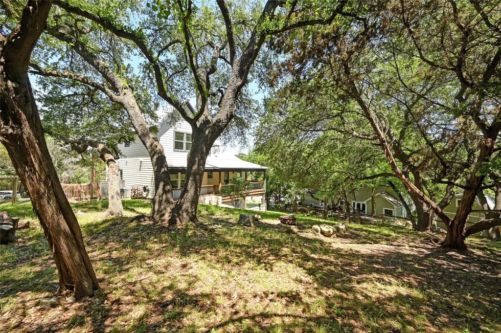 Custom built hill country home by Austin Classic Builders, in sought after Eanes School District and new low tax rate. Built into the hill, similar to homes found in mountainous areas. Home features metal roof, wood flooring, primary bed down and two secondary beds up, porches on both front and back with access from the primary bedroom to the large back porch. Huge 23' x 28' garage with additional lighting for workshop use plus updated plugs and power, with multiple additional storage areas including under the stairs, under the house with locking access door and under the back deck. Windows with views, updated kitchen and primary bath. Some window glass recently replaced, 2025. New carpet May 30, 2025. Lighting updated. Second living is an upstairs loft area for multiple use, current owners used it as an office. High ceilings, ceiling fans, laundry on the main level with full laundry room, extra storage area for all lake items under the house in separate room. Additional, outdoor work area behind the garage. Front decking and stairs finished with shou sugi ban process for a beautiful long lasting finish. Neighborhood boasts Civil Goat coffee shop and JoJo's Bakery.