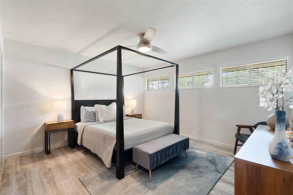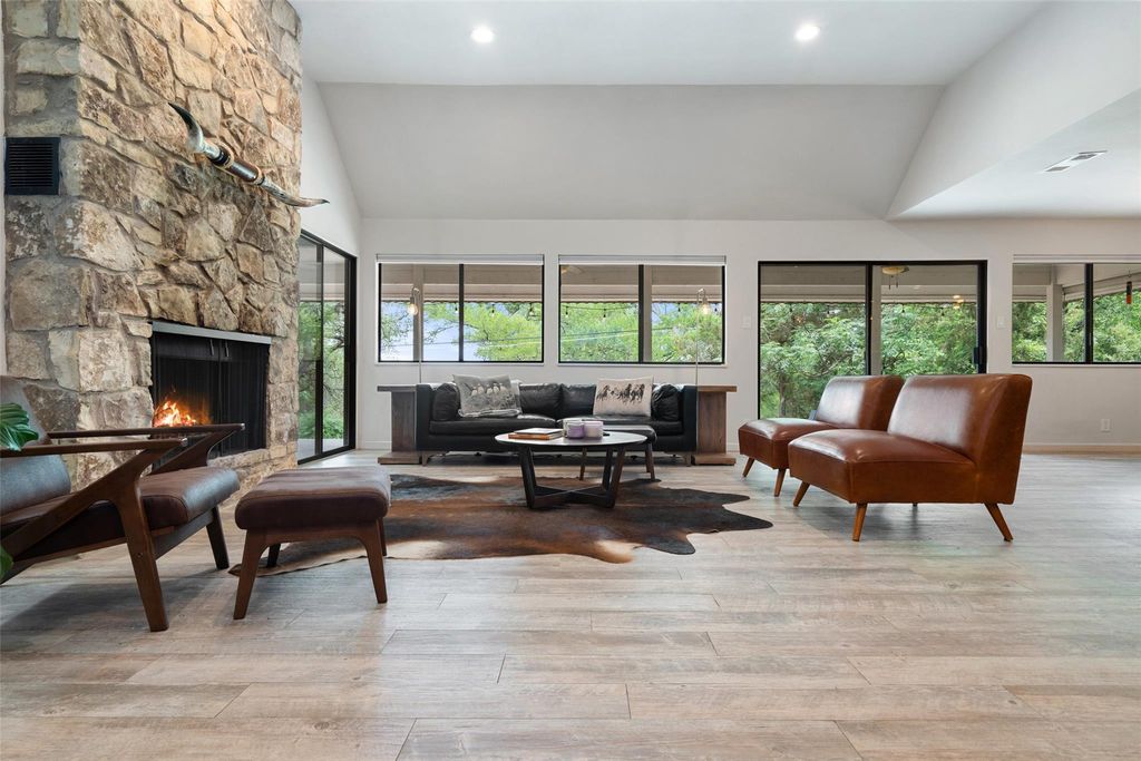 ** LAKE TRAVIS VIEWS ARE BACK!** Discover the epitome of luxury resort living with this exquisitely updated mid-century, single-story home nestled in the prestigious Lakeway area. Boasting three spacious bedrooms and two modern bathrooms, this residence is a perfect blend of comfort and elegance. Situated on a generous flat lot of over 2,000 square feet, this professionally designed home provides ample space for outdoor entertainment and relaxation, with potential for your dream pool to soak in the Texas sun. Surrounded by breathtaking hill country views, the serene environment offers an idyllic setting for a tranquil lifestyle. With an additional lot available, the opportunities for expansion or customization are endless, making it a coveted choice for those seeking privacy and exclusivity. The residence's fantastic location ensures that leisure is never far away"”enjoy close proximity to parks, the Lakeway Marina, and the renowned Lakeway Resort, along with a host of other amenities. This property's elegant blend of history and mid century modern design, coupled with luxurious features, creates a unique opportunity for discerning buyers. Indulge in the rare chance to own a piece of Lakeway's charm, where every day feels like a vacation. Your resort-style haven awaits.