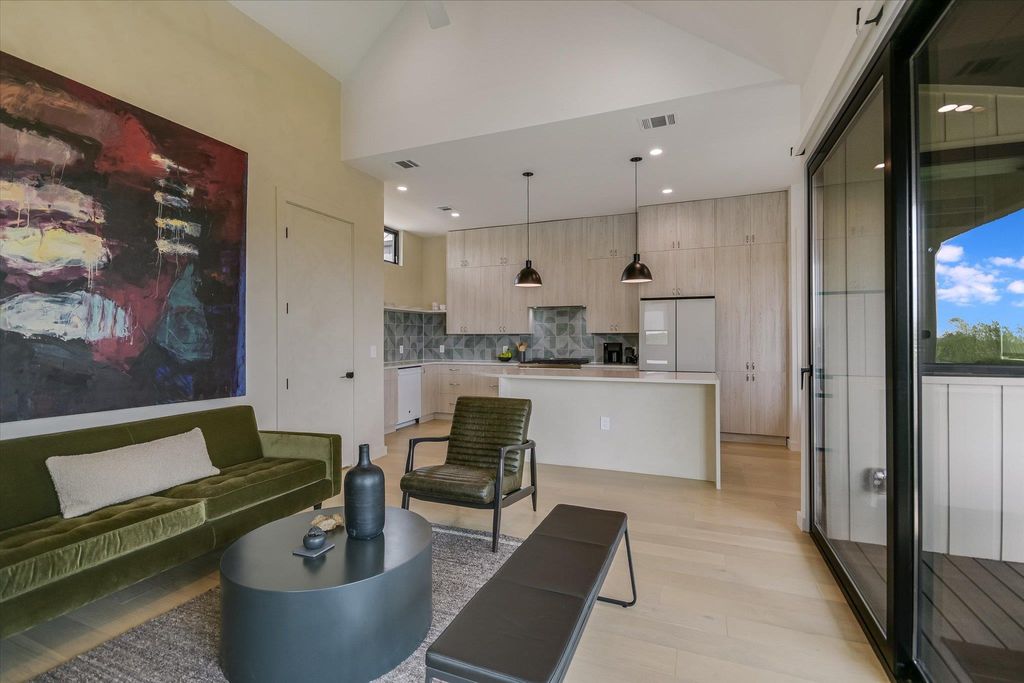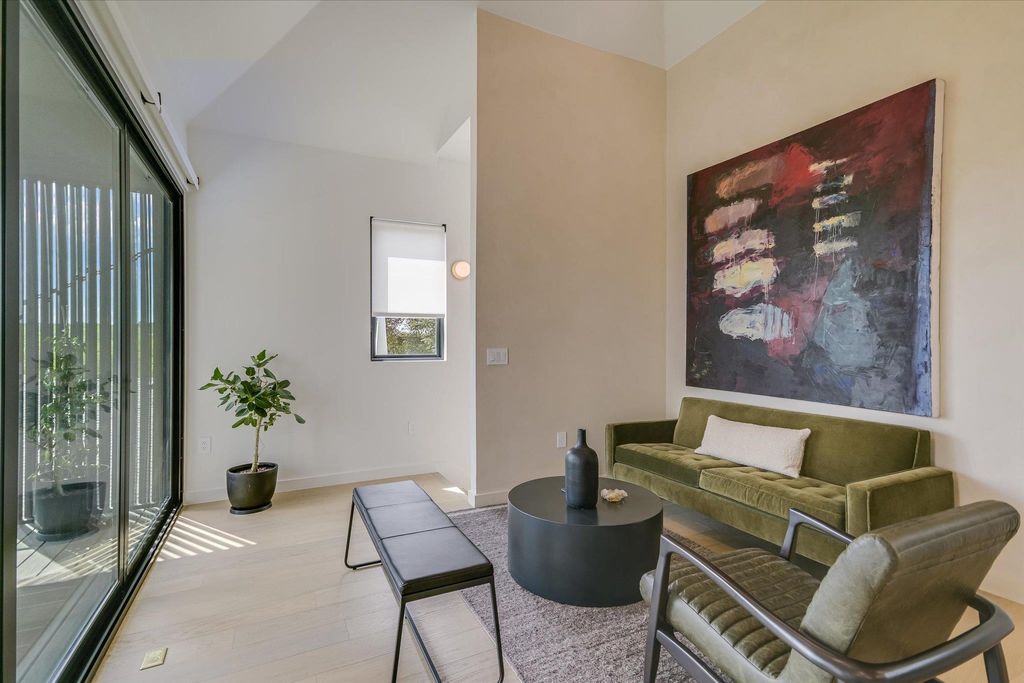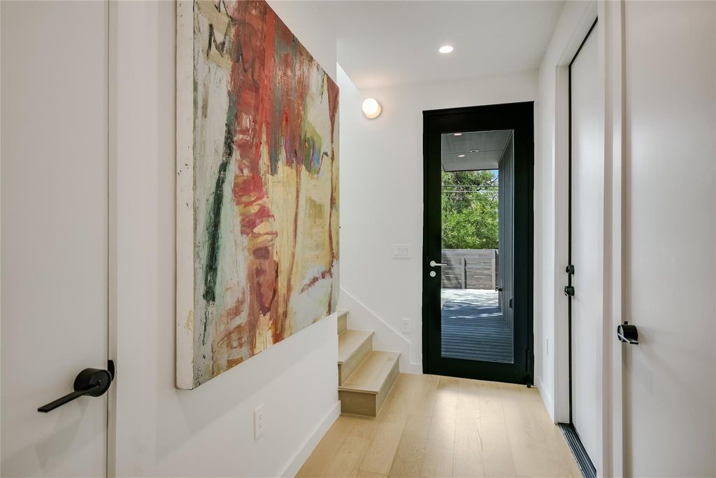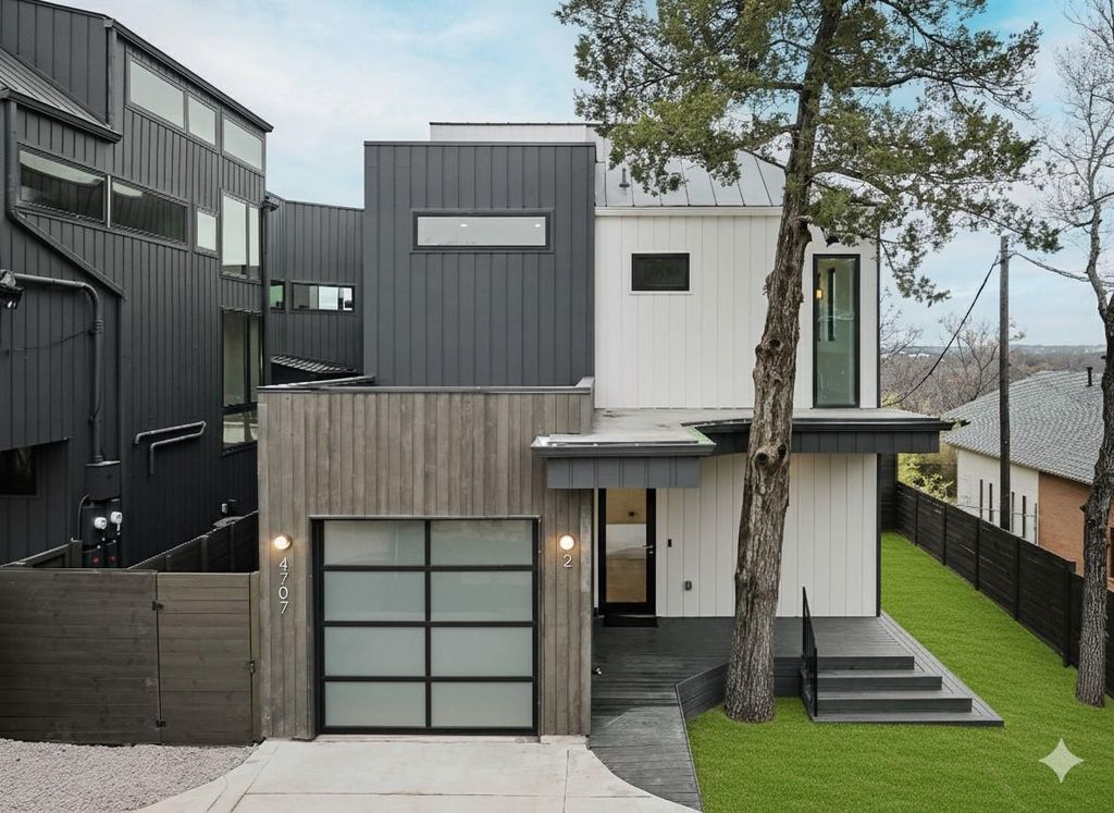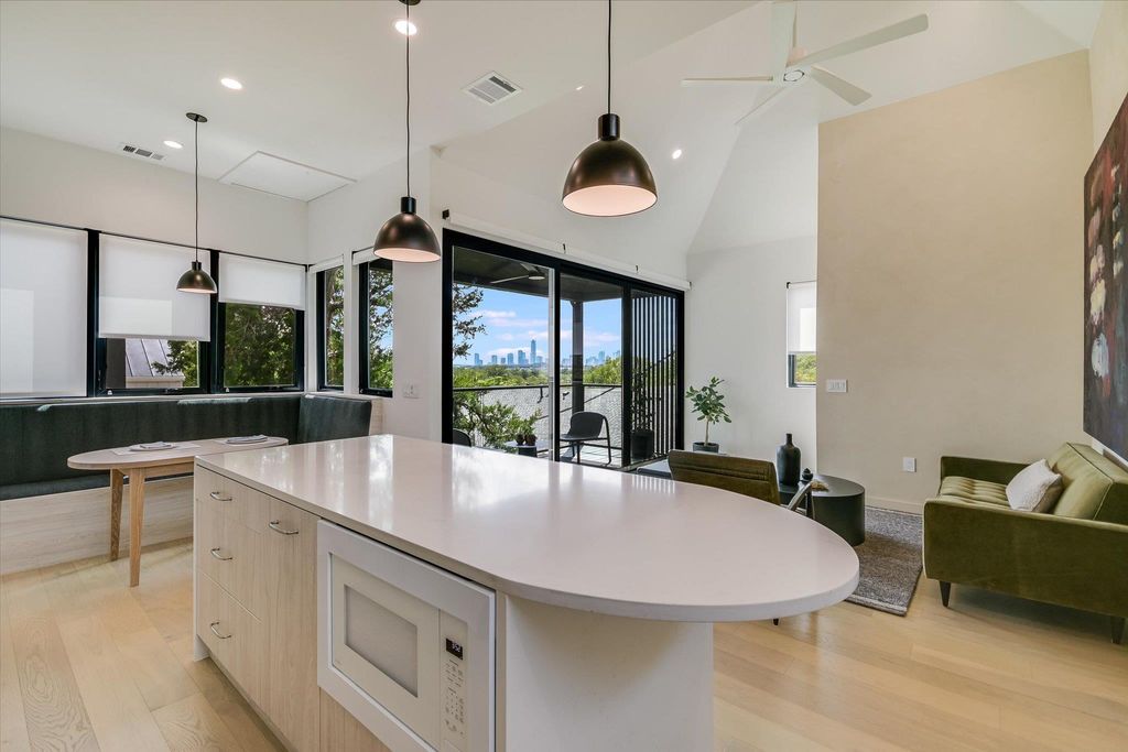 NO HOA Dues & Free Standing. Experience the ultimate in modern living with the Eastside Skyline Retreat, offering sublime SKYLINE VIEWS in one of the Eastside's most sought-after areas. Standouts include a spacious, private front and side yard for extended outdoor living. Built in 2025, this contemporary home exudes a treehouse ambiance with privacy and abundant green spaces. Discover a meticulously designed floor plan featuring 2 bedrooms, 2.5 bathrooms, and an open-concept living, dining, and kitchen area on the treetop level, with interiors by BB Design. Expansive picture and casement windows flood the space with natural light, while light hardwood floors, designer tiles, and high-end fixtures merge with airy textures and natural elements. Customized features include a spacious banquette dining area, a built-in workstation, and custom window treatments with automated shades. The chef's kitchen is both spacious and functional, boasting a large center island, floating shelves, and premium appliances. The entire upper level offers stunning views of Austin's skyline, with large sliders that open to a spacious balcony with glass railings for unobstructed views. The bedrooms are discreetly located on the lower floor for privacy. The use of natural and intentional materials throughout the home evokes a serene, Scandinavian vibe. Every detail, from the versatile one-car garage offering a variety of uses to the inviting front porch and grassy front and side lawns, has been thoughtfully curated. Just moments from Springdale Green, Austin Bouldering Project, Micklethwait Craft Meats, Palomino Coffee, and many local favorites, this unique hideaway provides the perfect location close to the urban core, yet feels like a serene nature retreat. As a bonus, this home is available for purchase fully furnished if desired, offering a seamless transition for busy buyers, investors, pied-a-terre seekers, or those looking for a second home. *Taxes are estimated- buyer to verify.*