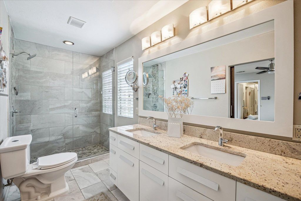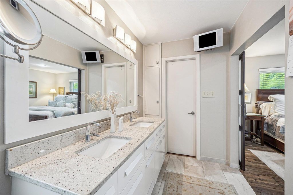 This custom built (1966), fabulous contemporary renovation (2015) including all new in-slab plumbing & upgraded electrical panels. Home is situated on a huge lot in a quiet cul-de-sac w/ rear entry garage & electric gate opener. Spectacular design has an open, flowing floor plan w/ large bedrooms, great storage & workshop. Designer touches throughout, with gorgeous lighting, double pane windows, mahogany front door, granite countertops, & much more. Great savings on energy, with solar panels. Beautiful backyard for entertaining with new, high, privacy fence.