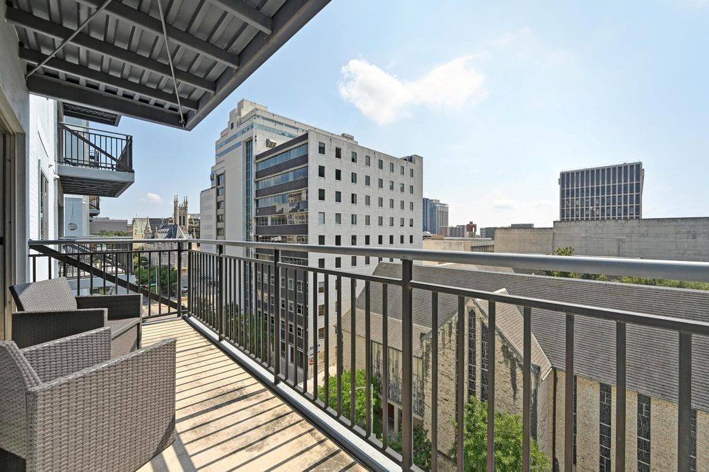 Once the historic Commodore Hotel, Brazos Place is now one of downtown's hottest addresses"”with a Walk Score of 99, you can literally step outside and be in the middle of the action. Just off Congress Avenue, this condo is the perfect home for techies, creatives, and professionals who want to skip the commute and soak up the city. Plus, it's fully furnished and move-in ready. Inside, this open-concept loft blends modern style with industrial flair: polished concrete floors, high-end cabinetry, granite countertops, and a full KitchenAid appliance package. The custom closet system and solid-core doors keep it sleek and functional, while the tiled backsplash adds that extra pop of design. There are plenty of perks: 24/7 security, a rooftop terrace with killer views, an on-site gym, and complimentary valet service. Need a guaranteed spot? Reserved parking is available across the street for $250/month.