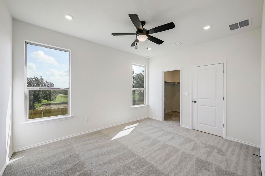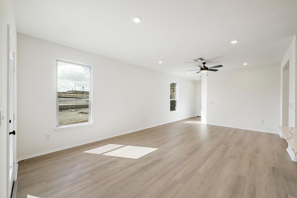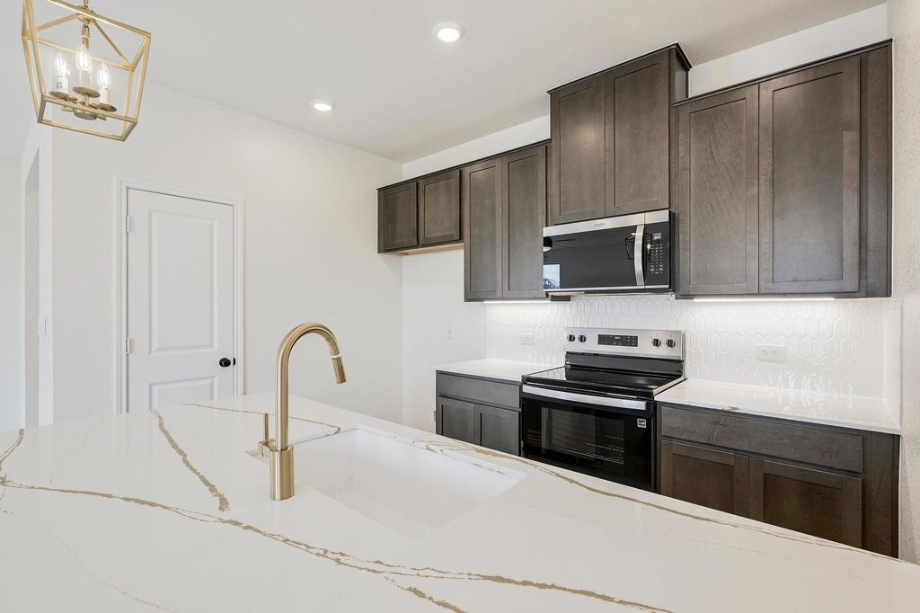 We make it easy to view our move-in ready homes with self-guided tours! Ask your sales counselor for more information, so you can see this elegant, single-story home that showcases an open floor plan with stylish luxury vinyl plank flooring and a spacious great room, which is ideal for hosting friends and family. A versatile den is perfect for a home office or retreat. The kitchen boasts Shaker-style upper cabinets, sleek tile backsplash and Silestone® countertops in Eternal D'Or. Unwind in the primary bedroom, which features plush carpeting, a walk-in closet and connecting bath that offers a dual-sink vanity and luxurious walk-in shower. Other highlights include an ecobee3 Lite smart thermostat, Sherwin-Williams® interior paint, modern Moen® fixtures, electric charging station pre-wiring and ceiling fans at great room, den and primary bedroom. Embrace outdoor living on the covered back patio.