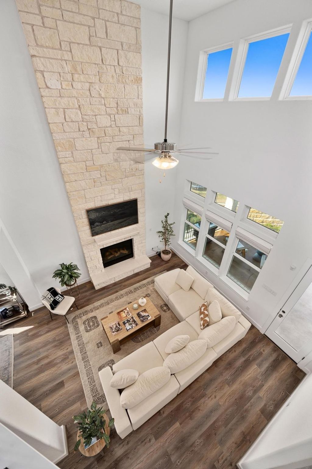 BOM: Buyer had change in job and did not even have home inspected. Built in 2022, this Rough Hollow home combines modern design with a functional layout featuring 4 bedrooms, 3.5 baths, an office, a game room, and a media room with wet bar and wine fridge. The main living area showcases soaring ceilings and a dramatic floor-to-ceiling stone fireplace, creating a bright and open space for everyday living and entertaining. The primary suite offers greenbelt views, double vanities, a garden tub, a walk-in shower, and a walk-in closet with custom built-ins, while three additional bedrooms and two full baths provide flexibility for family and guests. Rough Hollow residents enjoy resort-style amenities including a marina, lakefront grille, fitness center, and multiple pools. Highland Village adds even more lifestyle options with a lazy river, swim-up bar, and year-round community activities. Miles of neighborhood trails provide scenic hikes and easy access to Lake Travis.