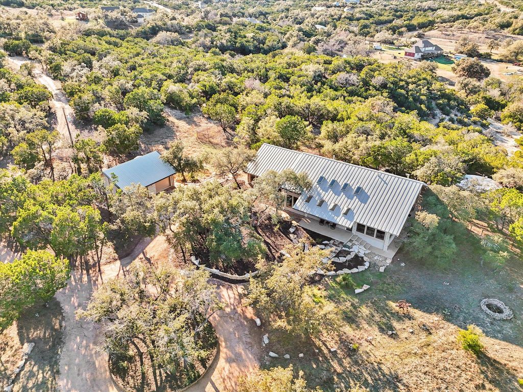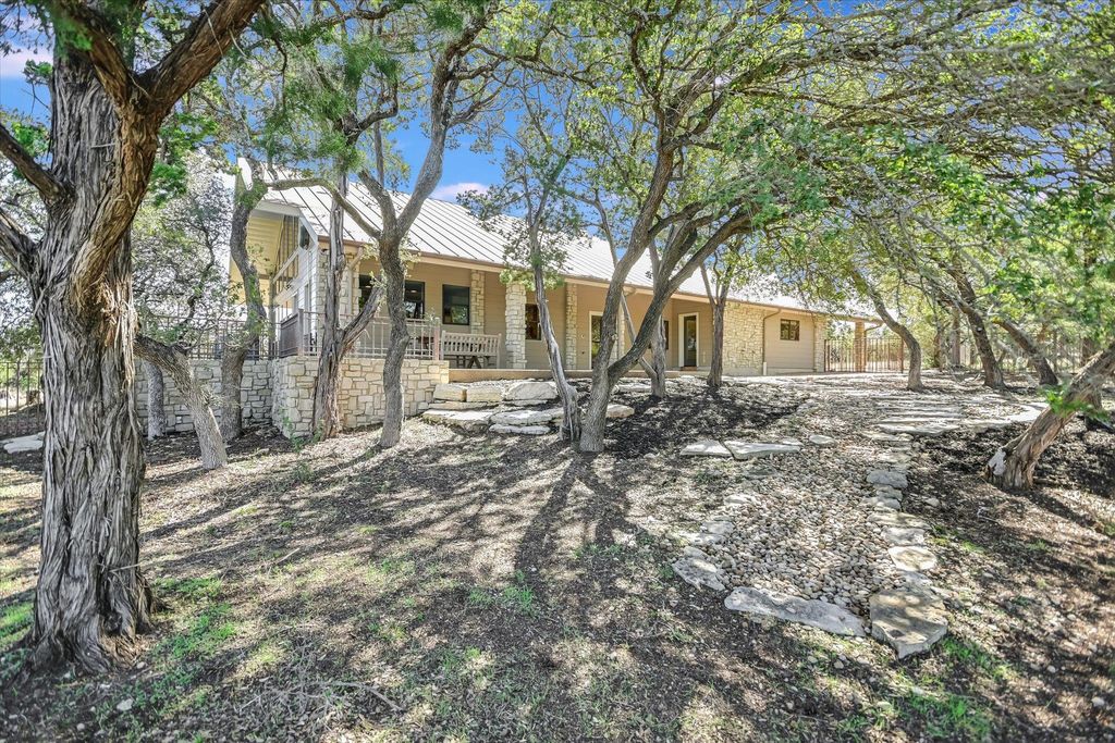 NEW PRICE "¢ REFINED HILL COUNTRY ESTATE WITH PANORAMIC VIEWS & URBAN ACCESS Perched on its own private ridge, this architecturally elegant 3,373+/- sq. ft. residence commands 15+/- acres of manicured Hill Country terrain with sweeping vistas across the protected 6,400+/- acres of Shield Ranch (as per owner). Tucked away on a secluded road, the setting offers unmatched privacy just minutes from Austin and the Hill Country Galleria in Bee Cave. Redesigned in 2011 with timeless detail, the home features sun-drenched interiors anchored by longleaf pine finishes, white oak floors, and strategically placed skylights. The spacious open-concept kitchen, dining, and living areas exude warmth and sophistication"”ideal for entertaining or relaxed day-to-day living. Luxurious touches include spa-style baths, an exercise room, and a full guest suite with private amenities. Upstairs, a lofted office/flex space is framed by custom laddered bookshelves and includes an additional full bath"”perfect for remote work, creative pursuits, or guest accommodations. A thoughtfully designed rainwater collection system, supplemented by a private well, enhances sustainability without compromising comfort. Wander the private trail system that winds past a wet-weather creek, through native flora, limestone hardscaping, and curated garden spaces. A detached two-car garage and flagstone walkways add to the home's enduring functionality and charm. Whether you're envisioning a pickleball court, swimming pool, or expanded garden retreat, the level topography and ample acreage provide endless opportunities to customize your lifestyle. Contiguous 14.98+/- acre Tract #8 also available for expanded privacy or future development. Call for New List Price! Some photos digitally enhanced for visual clarity. Buyer to verify all information. This is more than a residence"”it's a private sanctuary where luxury, nature, and convenience converge.