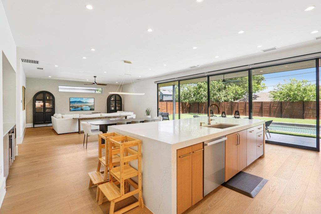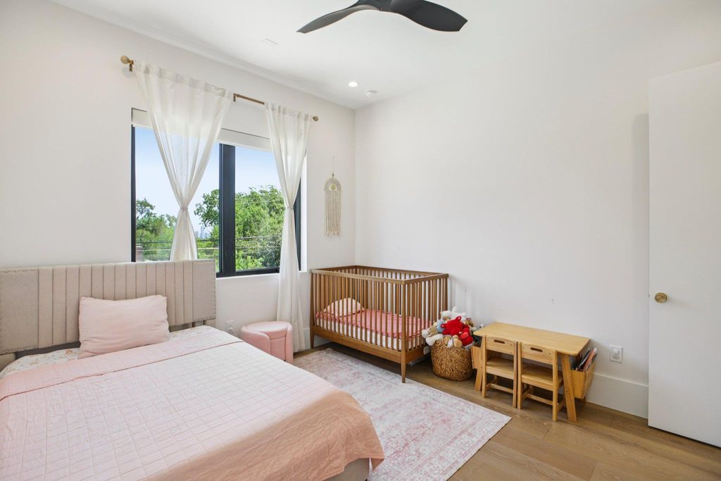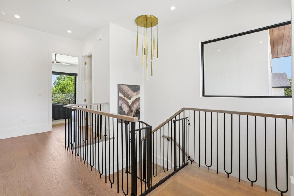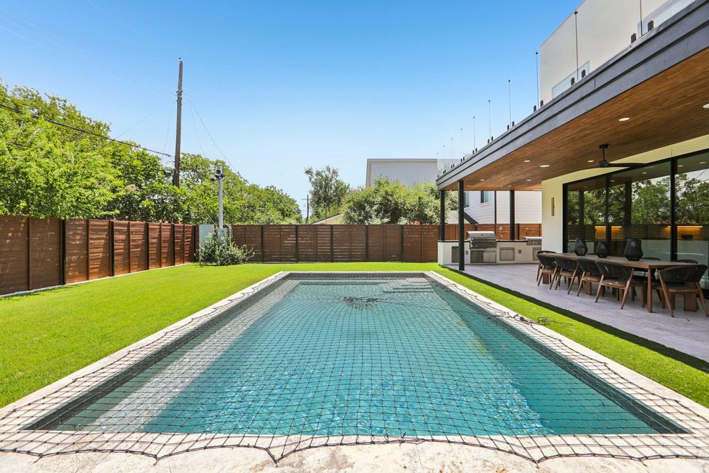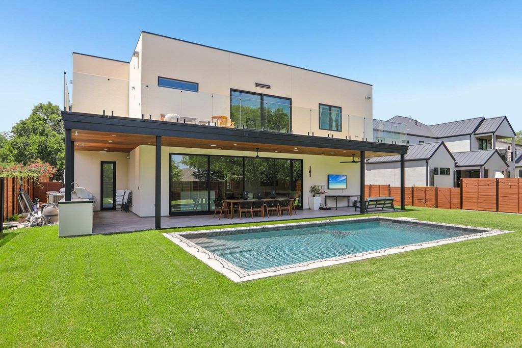 Welcome to 2010 Meadowridge Drive, a stunning contemporary home that blends modern luxury with breathtaking views of downtown Austin. Built in 2024, this residence features six spacious bedrooms and three and a half bathrooms, designed with an open-concept floor plan where the kitchen and living areas flow seamlessly together. The chef's kitchen is a dream, showcasing a large island, Sub-Zero and Wolf appliances, and custom fixtures and finishes throughout. The luxury master suite offers a serene retreat, while every detail of this fully automated smart home reflects thoughtful design and high-end craftsmanship. Step outside to enjoy the ultimate in outdoor living, with a covered patio and outdoor kitchen overlooking a sparkling pool and a balcony that captures the skyline views. With its beautiful drive-up appeal, striking architecture, and indoor-outdoor living at its finest, this home is a rare Austin treasure