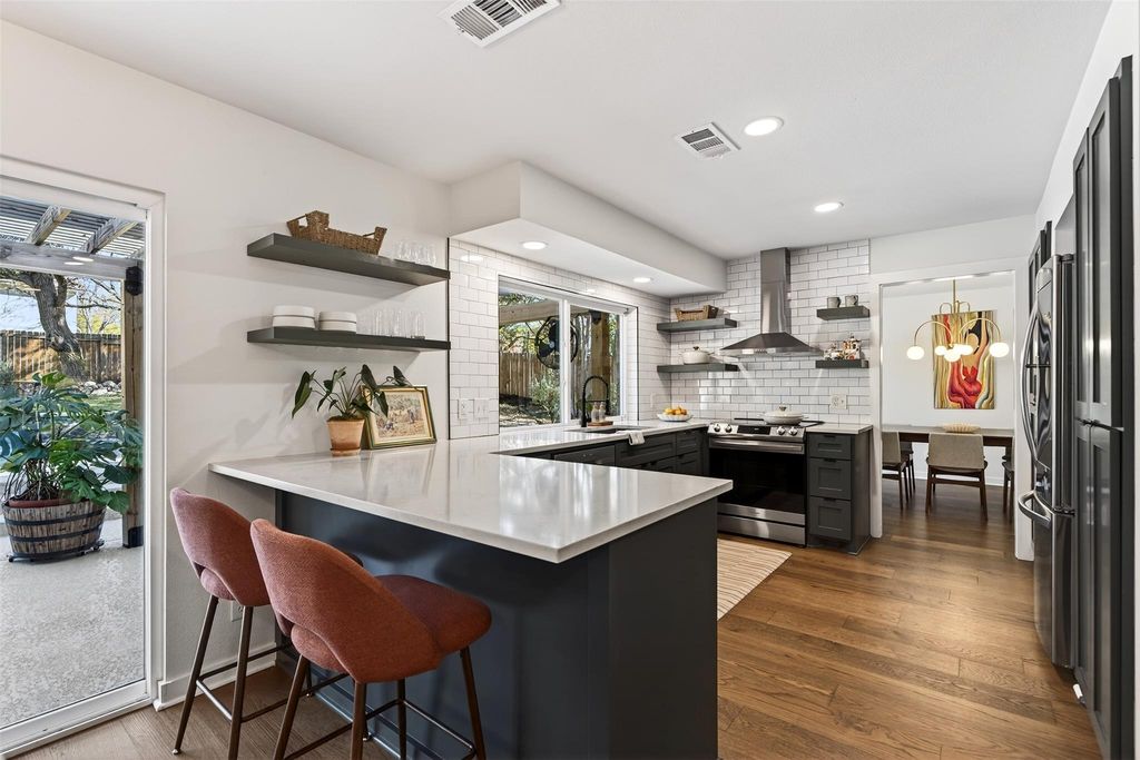 Stunning home located in the highly desirable Castlewood Forest neighborhood, celebrated for its gorgeous heritage evergreen live oaks and remarkable park-like atmosphere. Nestled on a spacious 0.3-acre corner lot, this home is shaded by magnificent oak trees and lush native landscaping. The pristine remodel showcases custom finish outs and designer details throughout. The spacious kitchen boasts custom cabinetry, quartz countertops, and stainless steel appliances, all replaced in 2020. The flexible floorplan includes two living areas, two dining areas, and a breakfast bar, offering ample space for both relaxation and entertaining. The huge master suite features a double vanity and a large walk-in closet, while three oversized guest bedrooms each offer spacious walk-ins. All systems replaced or enhanced 2020 to date and new real wood floors 2025! The true highlight is the entertainer's dream backyard with a sparkling pool and spa, offering a zen-like feel. Two seating areas provide the perfect spots to unwind beneath the sprawling heritage oak trees, making this outdoor space ideal for hosting or enjoying peaceful solitude. Perfectly located just 20 minutes from both Downtown Austin and Austin-Bergstrom International Airport, this home also offers quick access to the bustling, fast-growing entertainment district at the intersection of Manchaca and Slaughter. Enjoy vibrant nightlife, dining, and entertainment options, including the newest Cosmic Coffee location, right at your fingertips. Experience the perfect balance of serene suburban living and dynamic urban convenience in this Castlewood GEM!