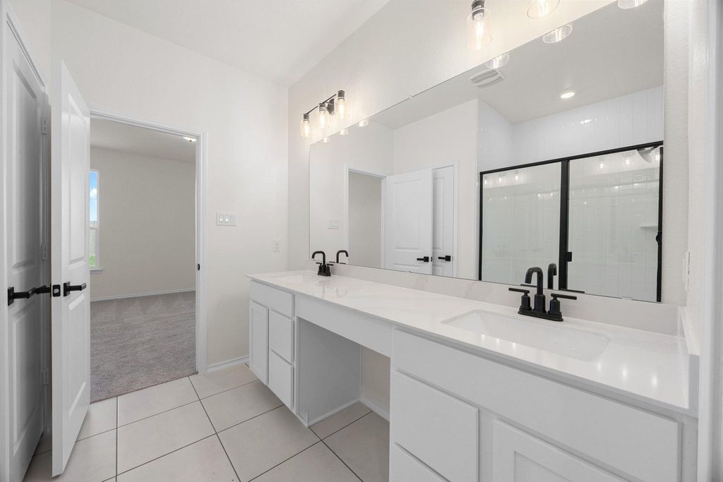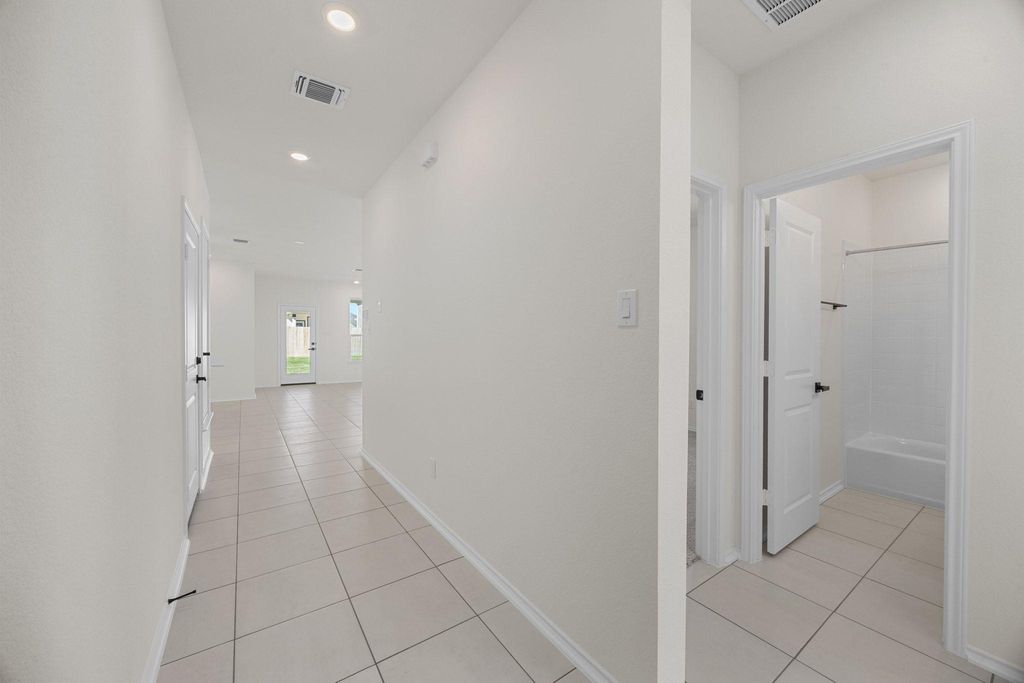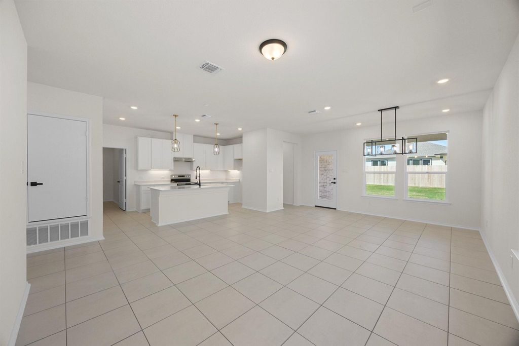 Discover the ideal mix of comfort and practicality in this charming, single-story home, which showcases an open floor plan with timeless tile flooring at living areas and baths. The spacious great room flows into a kitchen equipped with Shaker-style upper cabinets and Silestone countertops in Siberian. Retreat to the primary bedroom, which features plush carpeting, a walk-in closet and connecting bath that offers a dual-sink vanity and luxurious walk-in shower with tile surround. Additional amenities include a smart thermostat, Sherwin-Williams interior paint and Moen fixtures throughout. Step outside to a covered back patio, which is perfect for outdoor relaxation and entertaining.