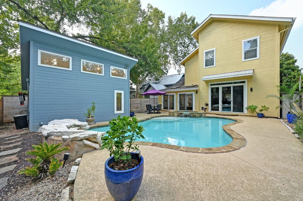 Welcome to your dream home on Ford Street in Zilker - charming, open, and filled with light throughout. With 3 generous bedrooms, each one a true retreat, plus 3 entirely updated bathrooms, this home has been refreshed for modern living. On top of that, there are three versatile flex rooms ready for whatever you need - a nursery, home office AND exercise studio or anything else you can imagine. The lay out flows beautifully: upstairs primary suite opens through french doors to one of the amazing flex rooms that expands your possibilities. Large windows and high ceiling amplify the sense of space and bring in abundant natural light. The kitchen, warm and inviting, overlooks the pool, making entertaining a breeze. A bonus sunroom and full bathroom extend off kitchen and could also be a great guest en suite along with the 221 sq ft detached art studio/office extension (not included in TCAD). Outside enjoy a private oasis and pool setting the stage for both relaxing evenings and lively gatherings on the coolest street in town. If being located just one block from Zilker Elementary and Little Zilker Park wasn't enough, you're also minutes away from Barton Springs, Zilker Park, South Congress and all the culture and charm downtown Austin has to offer. Only the foundation remains from the original house, redone in 1998 with extensive renovations and expansions in the last several years. This home has been immaculately maintained and won't last long! All information is deemed reliable but not guaranteed. Buyers are encouraged to verify all details, including square footage, permits, and zoning, to their own satisfaction".
