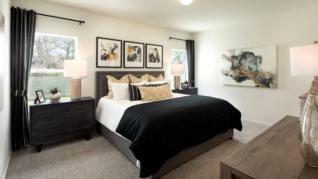 The Mason - This single-level home features a spacious open concept design among the living and dining spaces, offering access to a covered patio ideal for outdoor meals with friends or curling up with a book on a sunny afternoon. The owner's suite is privately located at the back of the home, while three additional bedrooms share a hallway off the family room. Photos are for illustrative purposes only. Estimated Completion April 2026. The completion date, prices and features may vary and are subject to change. Please verify with Lennar directly.