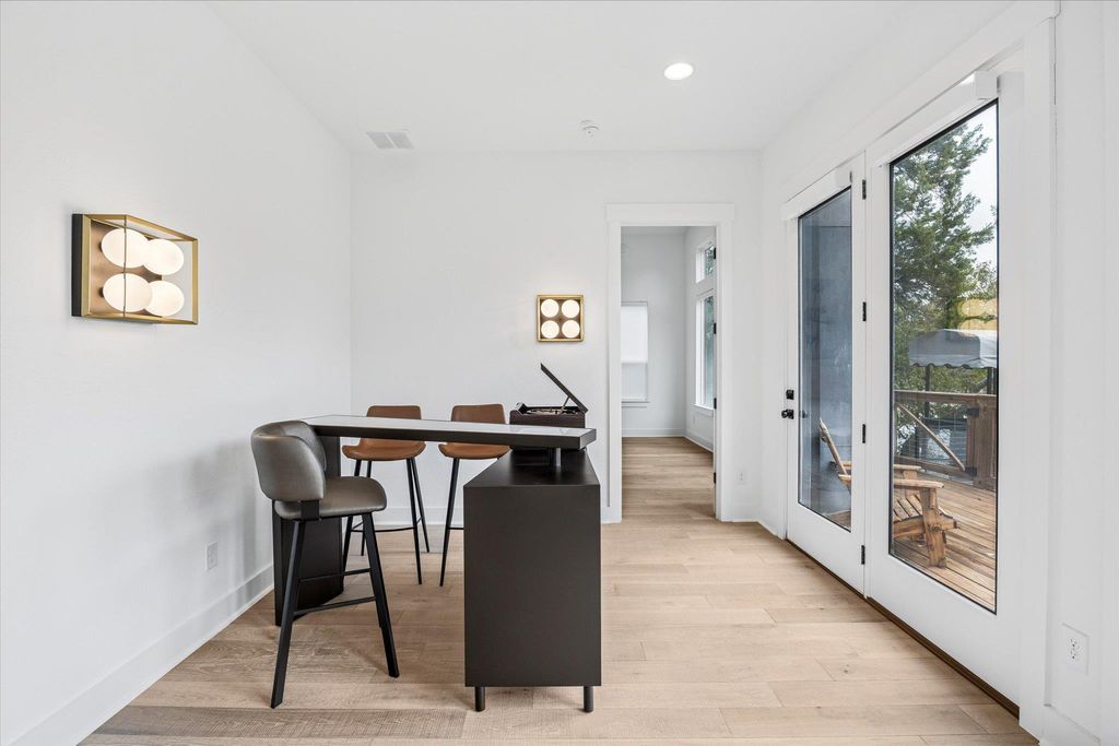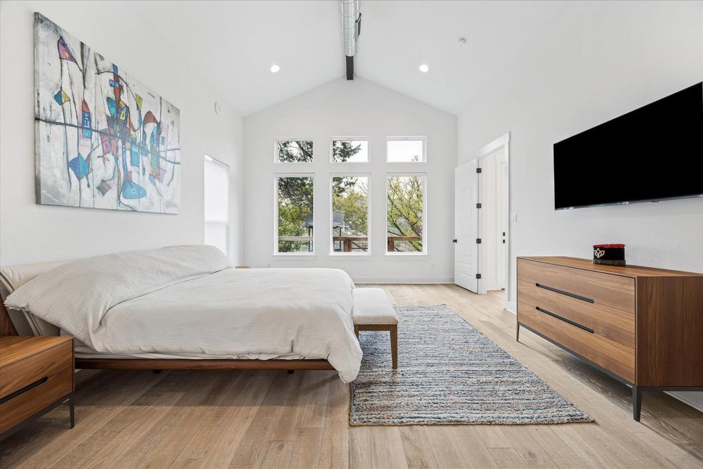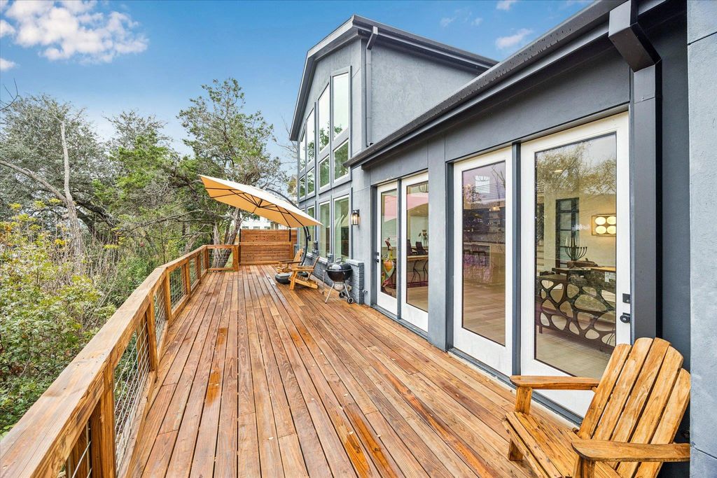 Experience lakeside luxury in this stunning waterfront residence, impeccably upgraded and barely lived in. Thoughtfully designed with soaring ceilings and expansive walls of glass, the home is filled with natural light and captures breathtaking views from every angle. The open-concept layout is ideal for sophisticated entertaining, seamlessly connecting the elegant living spaces with a modern, high-end kitchen. Every detail reflects exceptional craftsmanship"”from curated designer tile and wide-plank hardwood floors to custom stair treads, spray foam insulation, and striking live-edge shelving. The serene main-floor owner's retreat offers a true spa-like escape, complete with a spacious layout, dual shower heads, and an oversized walk-in closet with abundant built-in shoe storage. Step outside to a gorgeous elevated deck overlooking panoramic lake and Hill Country views. A brand-new private tram and custom-built stairs provide effortless access to your waterfront below, where newly installed dock is ready for your boating and water activities. This property is an exceptional choice for a refined second residence or lake retreat, and also offers outstanding potential for short or mid-term rentals.