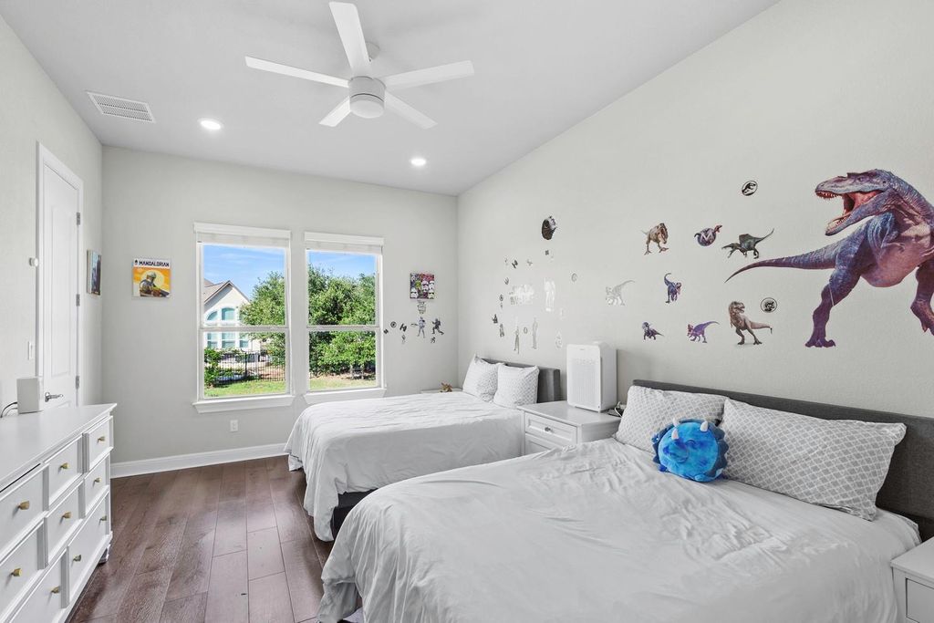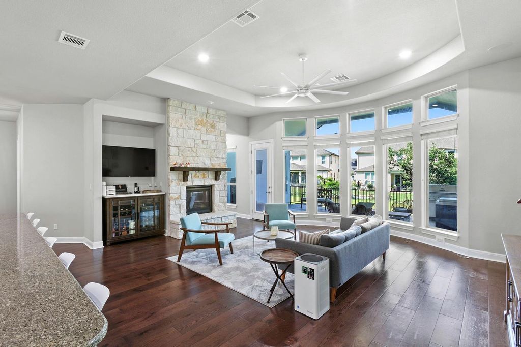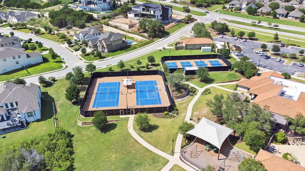 Experience Luxury Living in Travisso! Step into elegance with this beautifully designed home, perfectly situated on a quiet cul-de-sac in one of Leander's most desirable communities. From the moment you enter, you'll be captivated by the open floor plan, rich hardwood floors, and a chef's dream kitchen complete with high-end finishes and abundant space for entertaining. Featuring 4 spacious bedrooms, 3 full baths, 2 dining areas, and a large family room, this home offers both comfort and sophistication. Movie lovers will adore the private theater room with full surround sound"”perfect for cozy nights in. Relax in the spa-inspired primary suite with a walk-in shower, soaking tub, and double vanities, or step outside to your oversized backyard retreat with a covered patio and a full outdoor kitchen"”ideal for weekend gatherings and serene evenings. Enjoy eco-friendly living with Tesla solar panels, EV chargers, and a 3-car garage, all on nearly half an acre offering exceptional privacy. Travisso residents also enjoy resort-style amenities, including a clubhouse, pool, fitness center, trails, and breathtaking hill country views. This property delivers the ultimate in luxury, comfort, and convenience!