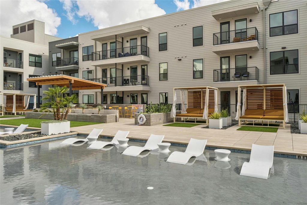 Looking for a walkable neighborhood surrounded by nature while being in the core of Austin? Look no further than Parkside at Mueller! This top floor 1 bedroom has a welcoming open floorplan with a kitchen at the heart of it all. The warm tones of the walnut finished cabinets complimented with brass hardware really make the Carrera marble-style quartz countertops shine! A kitchen island makes for the perfect centerpiece of storage and functionality. A full stainless steel Samsung appliance package included makes this a move in ready dream. The living room is filled with natural light from the oversized windows showcasing the Mueller neighborhood. Escape to the bedroom for relaxation while maintaining that open feel from the abundant windows. With so many amenities to enjoy within the building, you'll never want to leave! Get a workout at the fitness center with Peloton Bikes, or lounge in the Clubhouse. Grab a cabana at the resort style pool while you grill at the outdoor kitchen. Then wrap up by the firepit on the rooftop terrace featuring breathtaking views of Mueller Lake and downtown Austin! When you're ready to head out, you're surrounded by so many of Austin's best restaurants and entertainment right at your doorstep. This condo isn't just a home -it's a lifestyle.