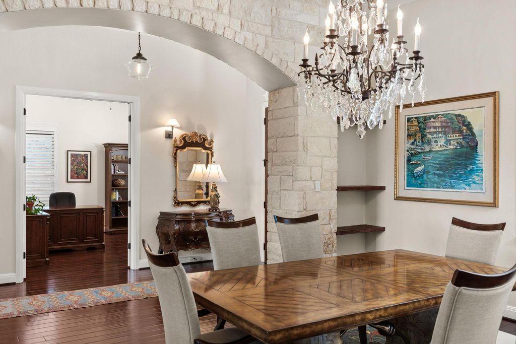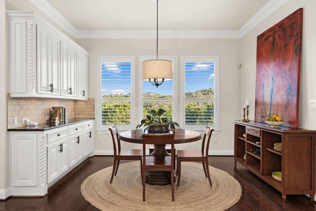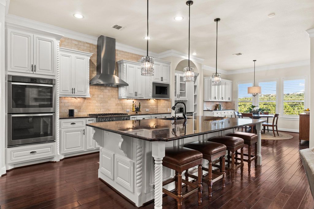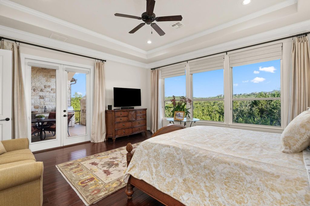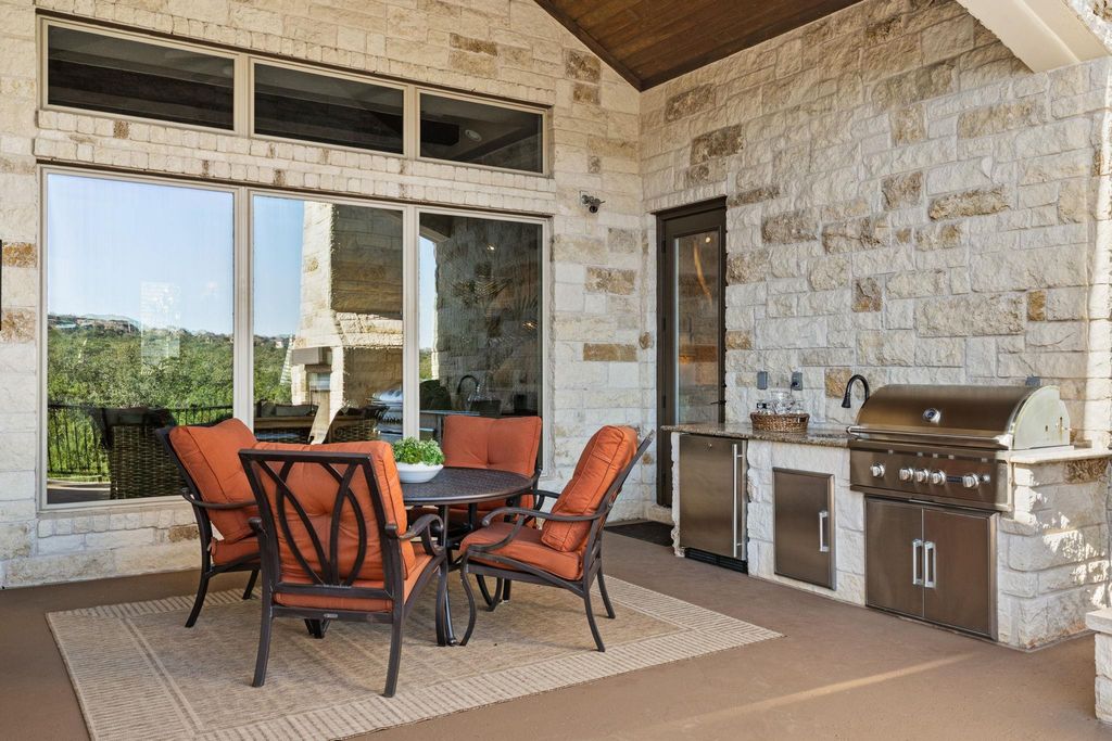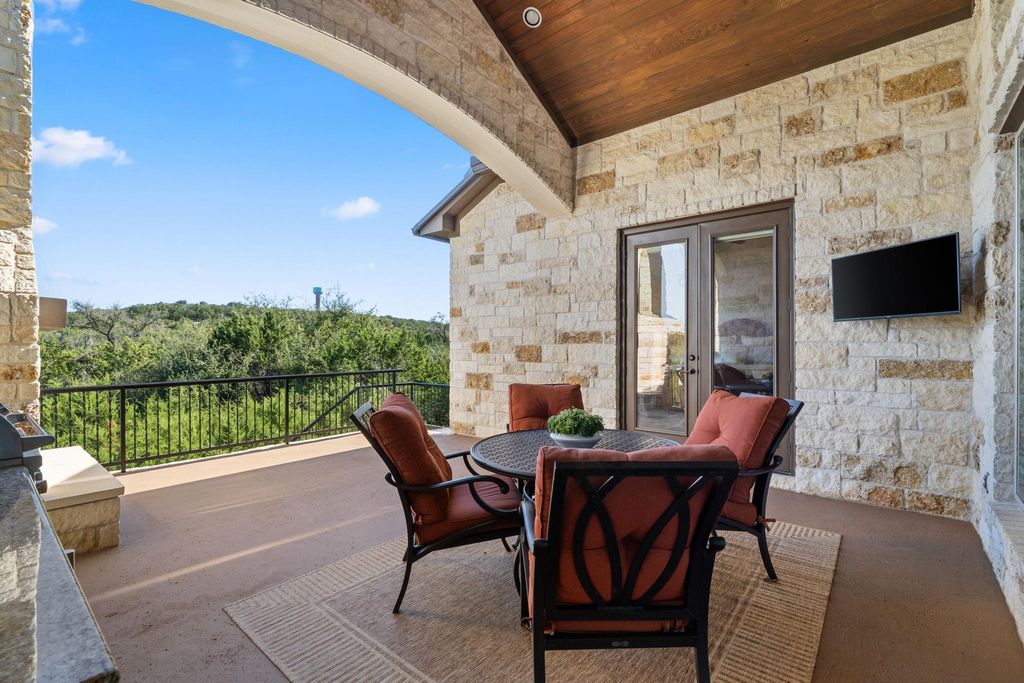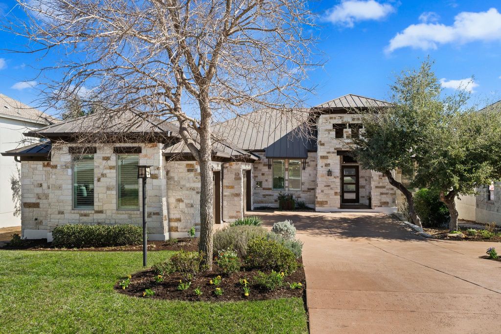 This one-story estate by Sitterle Homes showcases luxury craftsmanship with their signature bronze entryway emblem. Soaring ceilings, limestone columns, and elegant arches create an atmosphere of refined beauty. The open-concept layout blends indoor and outdoor living, featuring four bedrooms and four bathrooms, each designed for comfort and style. The gourmet kitchen has a Sub-Zero fridge/freezer, six-burner Viking range, double ovens, and Bosch dishwasher, with custom slide-out drawers for effortless organization. The lavish primary suite features a custom walk-in closet with built-ins and direct patio access, where a wood-burning fireplace creates a serene retreat. Expansive picture windows showcase lush Texas greenery, while a gas fireplace enhances the main living area. A dedicated office with glass panel doors offers privacy, while wood flooring, plantation shutters, and Austrian crystal chandeliers add elegance. Designed for entertaining, the outdoor space includes a kitchen with a gas grill, sink, bar fridge, and TV, plus a wood-burning fireplace for year-round enjoyment. A private back gate opens to hiking and biking trails for easy access to nature. The 3-car garage features an epoxy floor and floor-to-ceiling cabinetry. Nestled among mature oaks, the property backs to pristine open land for privacy. Located in award-winning Lake Travis ISD, this estate offers five golf courses within eight minutes, indoor and outdoor tennis and pickleball at The Hills Country Club, and private boat slip rentals on Lake Travis. Residents enjoy year-round boating with the Nautical Boat Club, offering a lake lifestyle without boat ownership. Five minutes from Hill Country Galleria, 30 minutes from downtown Austin, and 30 minutes from Texas Wine Country, this home blends luxury, convenience, and tranquility. A rare opportunity to own a crafted Texas Hill Country estate where superior craftsmanship meets privacy. Schedule your private showing today.