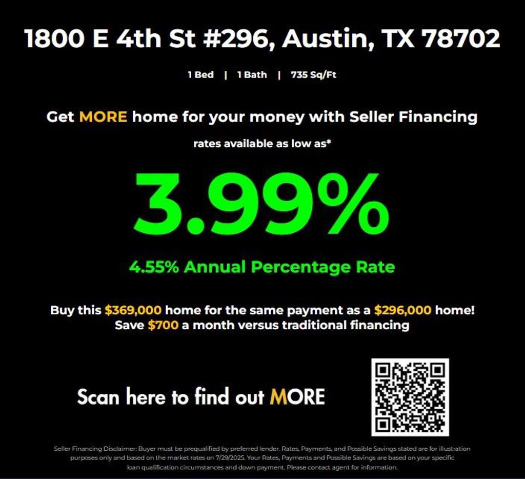 Modern design meets unbeatable location in this stylish 1-bedroom condo in the heart of East Austin. Located in one of the neighborhood's most sought-after buildings, this unit offers an efficient open-concept layout with large windows, sleek finishes, and abundant natural light. The home includes all appliances, making it truly move-in ready. A reserved parking space is included, with the option to purchase an additional parking spot and private storage unit for added convenience. Enjoy the building's amenities, including a small pool, fitness center, and rentable guest suites for visiting friends and family. Situated just minutes from downtown and surrounded by some of Austin's best restaurants, bars, and boutiques, this condo offers the perfect blend of comfort, style, and location. Seller Financing available at 3.99%