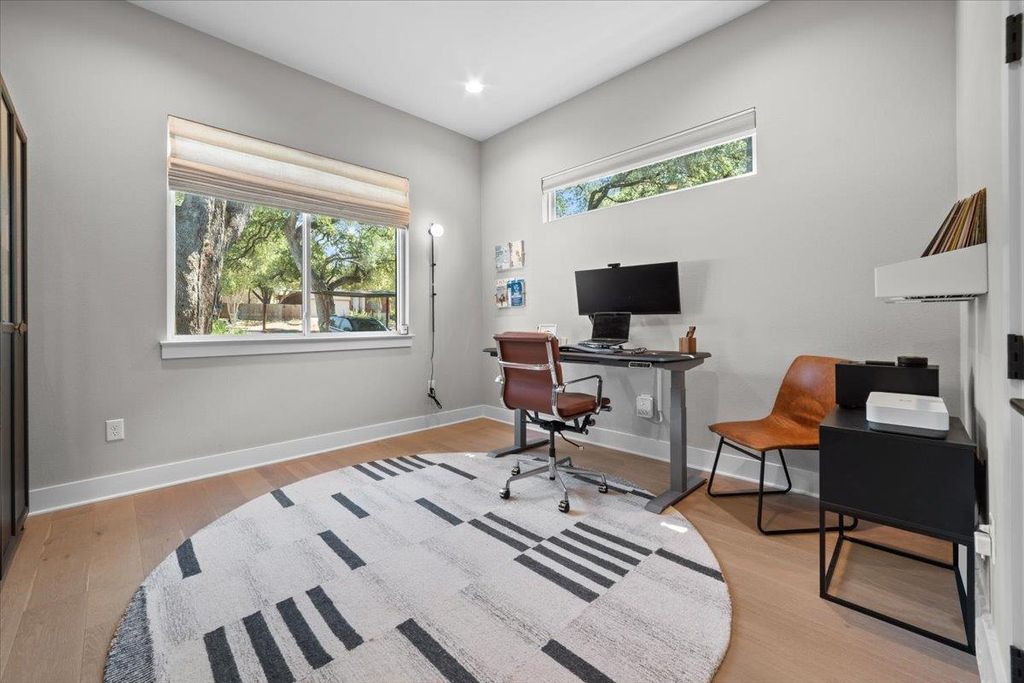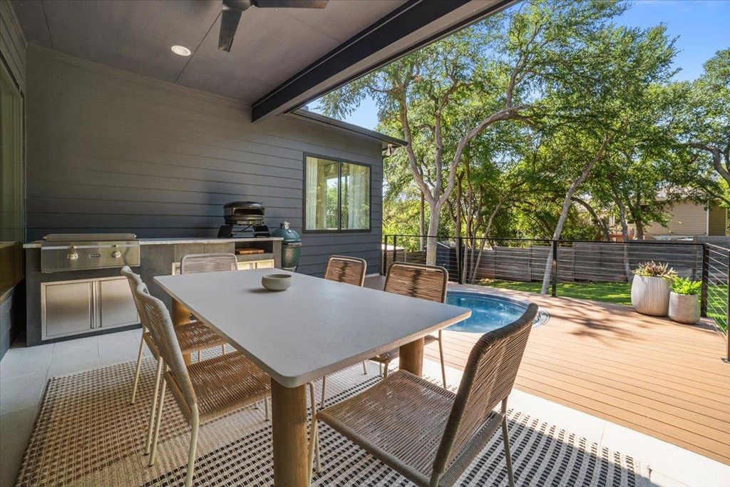 Welcome to your private retreat in the heart of Austin's 78741. Set on a rare 0.24-acre lot just minutes from Lady Bird Lake, SoCo, East Austin, and the airport, this newer construction home offers the perfect blend of luxury and location. A tree-lined driveway sets the tone, opening into a dramatic two-story foyer and light-filled living area with wide-plank hardwoods, soaring ceilings, and a sleek fireplace framed by walls of windows. Entertain with ease in the chef's kitchen featuring Thermador appliances, a spacious walk-in pantry, and seamless flow into the dining area and covered patio. The outdoor kitchen"”with Coyote flat-top grill and pizza oven"”makes alfresco dining a year-round lifestyle. The backyard is a true oasis, complete with a cowboy pool that cools to 55 degrees in summer or heats to 110 in winter, plus plenty of space for future expansion. Upstairs, double doors lead to a flexible game room with bonus storage, while the dedicated downstairs office/5th bedroom and full bath make work-from-home both quiet and comfortable. The spa-style primary suite features a soaking tub, frameless shower, and an oversized walk-in closet with custom built-ins. Location highlights: 7 minutes to the airport, 7 minutes to Lady Bird Lake hike & bike trails, and 10 minutes to SoCo. Favorite local spots include Radio East, Meanwhile Brewery, Pinthouse, Buzzmill, Mercado Sin Nombre, Ezov, and more. Wide, quiet streets with no through traffic create a welcoming neighborhood feel, perfect for biking and evening strolls. This thoughtfully designed home offers unmatched privacy, modern amenities, and an enviable Austin lifestyle"”all in one.